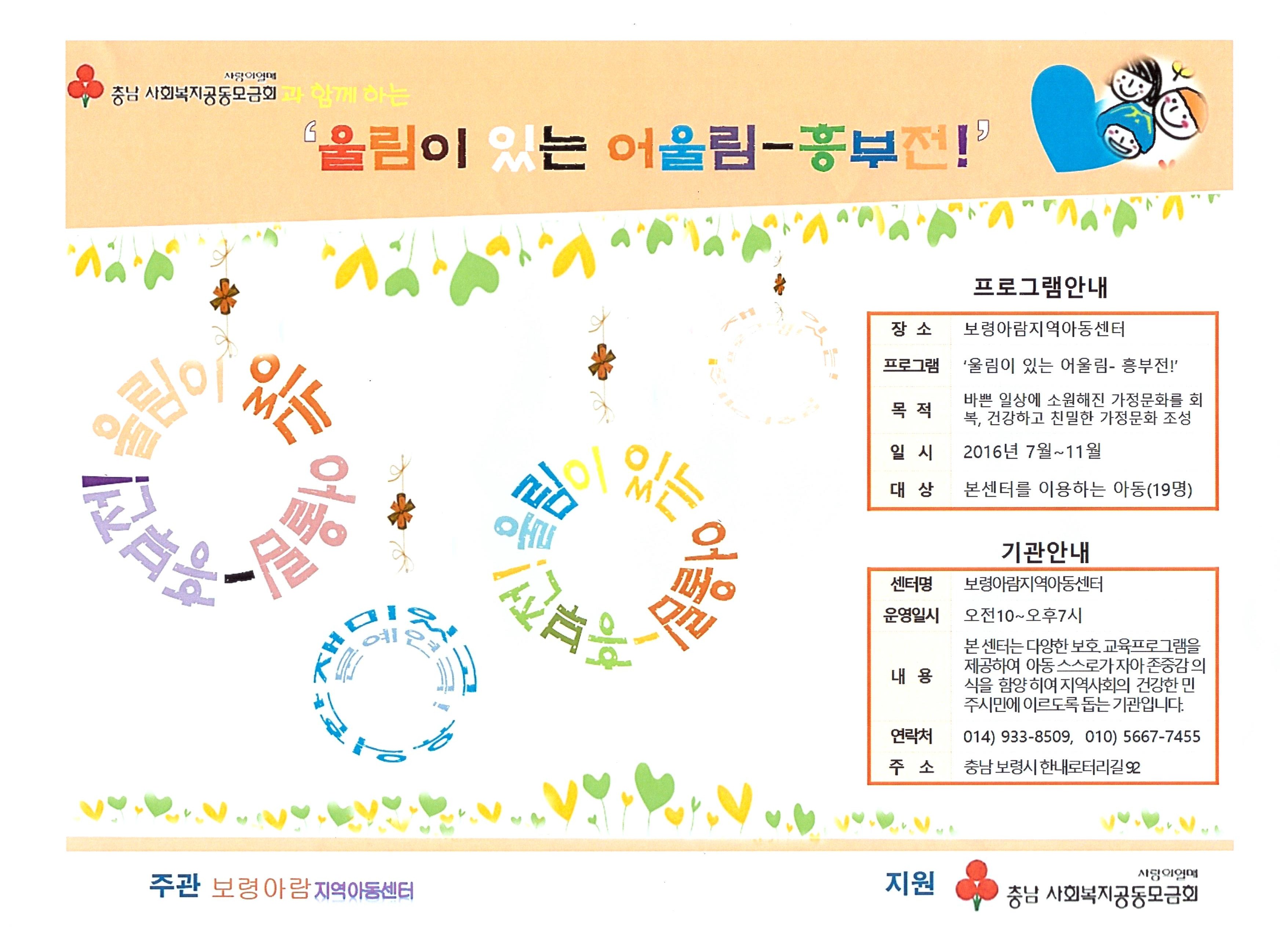 우리센터 아동들은 정서지원 프로그램으로 "문예연극"을 통하여 5개월간 흥부전을 연습했으며 더 나아가 자신감을 키우기 위해