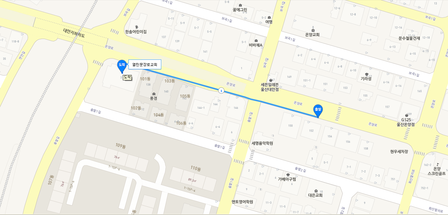 <네비게이션 주소> 울산광역시 울주군 온양읍 솔밭길3 열린문교회