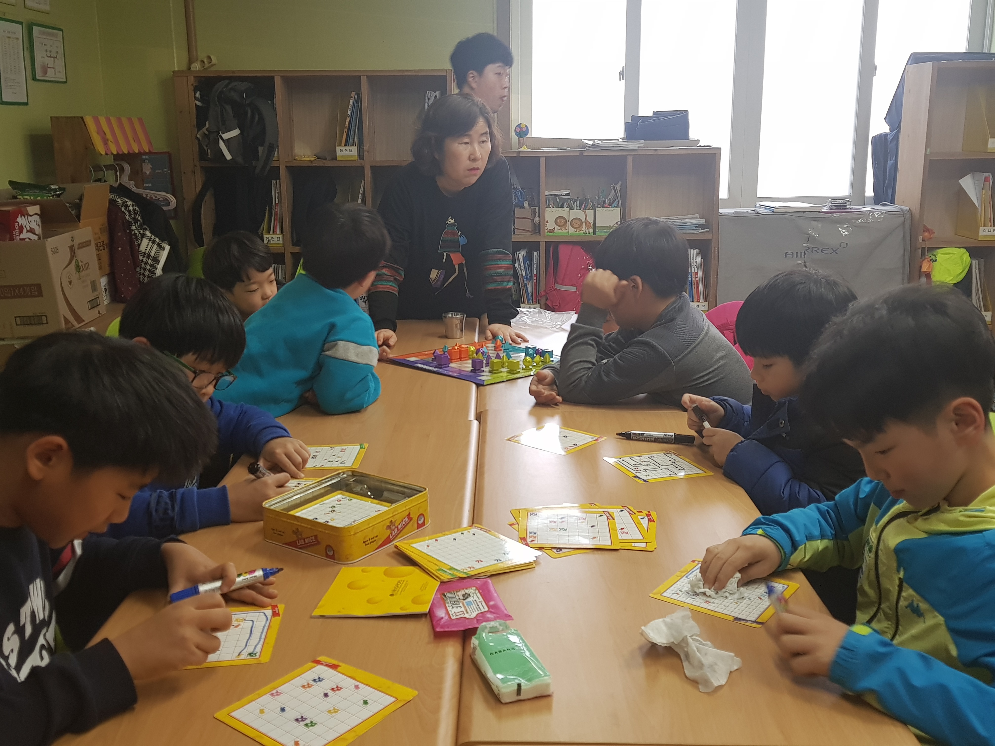 주1회 보드게임 강사님이 재미있는 보드게임 수업을 해주시고 있습니다.