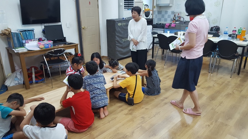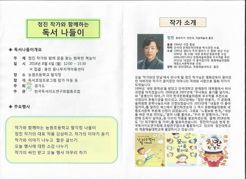 * 2018년 8월 6일, 정 진 작가님과 공우미 강사님과 즐거운 독서나들이 수업을 했습니다!