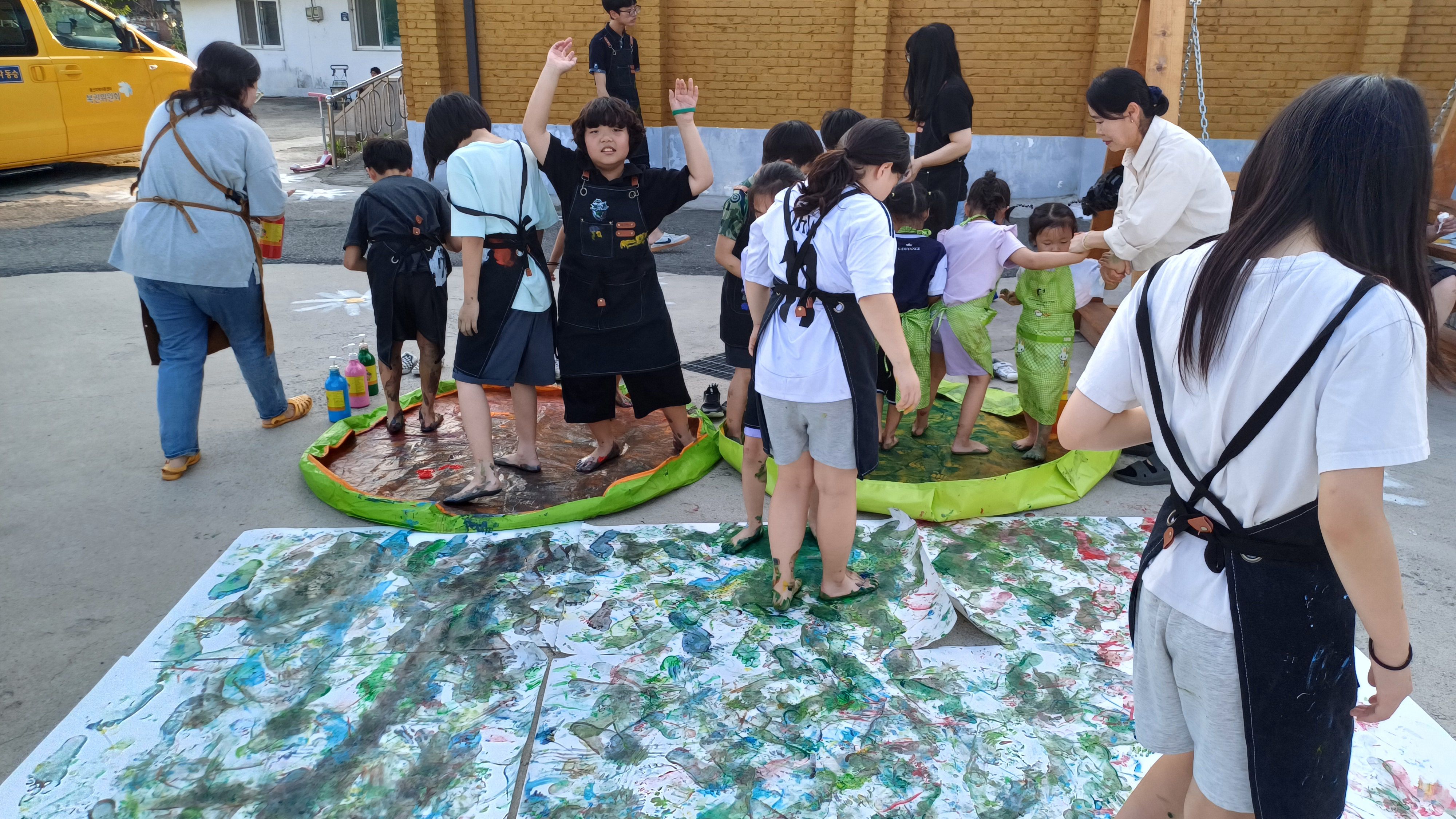 처음에는 "이걸 왜 해야하나"하며 한숨쉬던 아이들이 발자국을 남기기에 바쁘다. 알록달록 예쁘던 색이 나중에는 비슷한 색이 되었다.