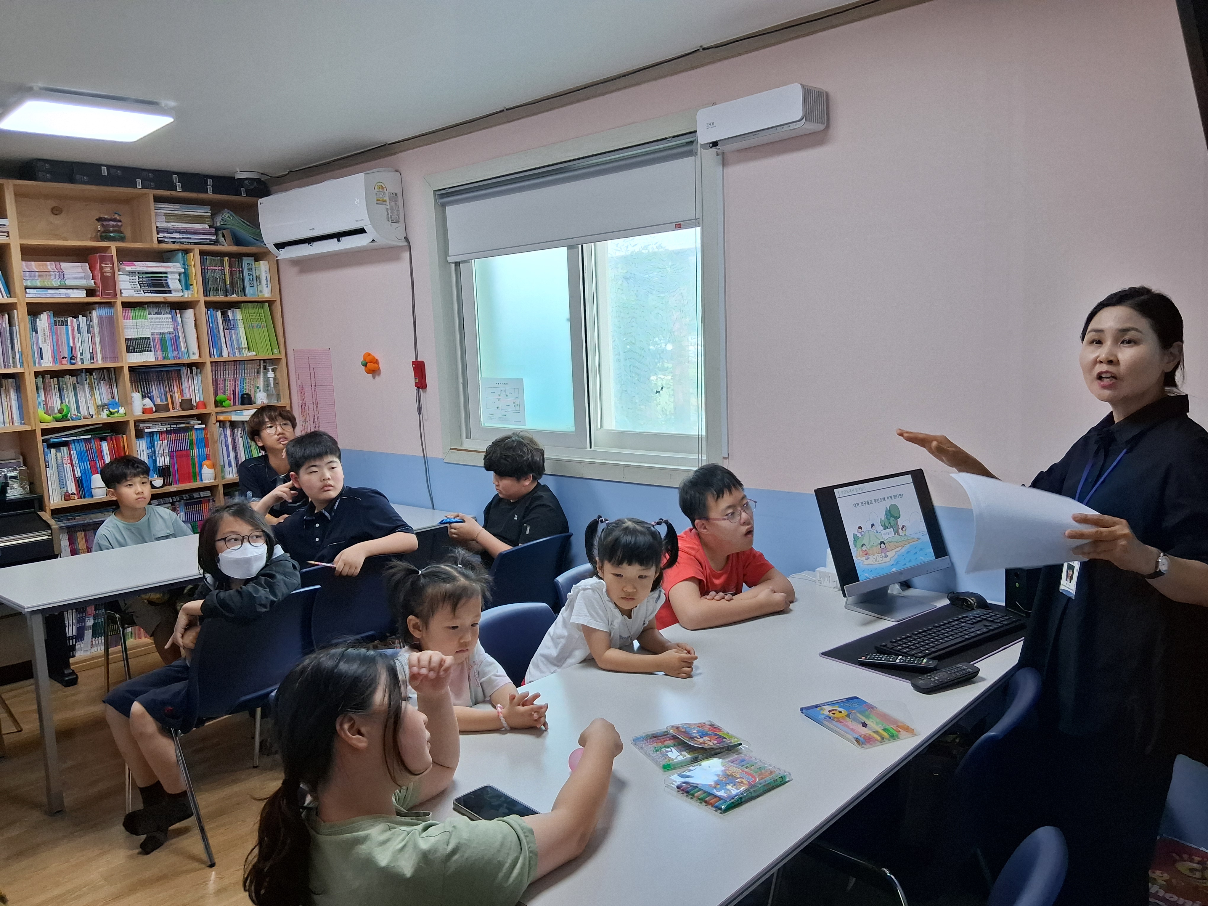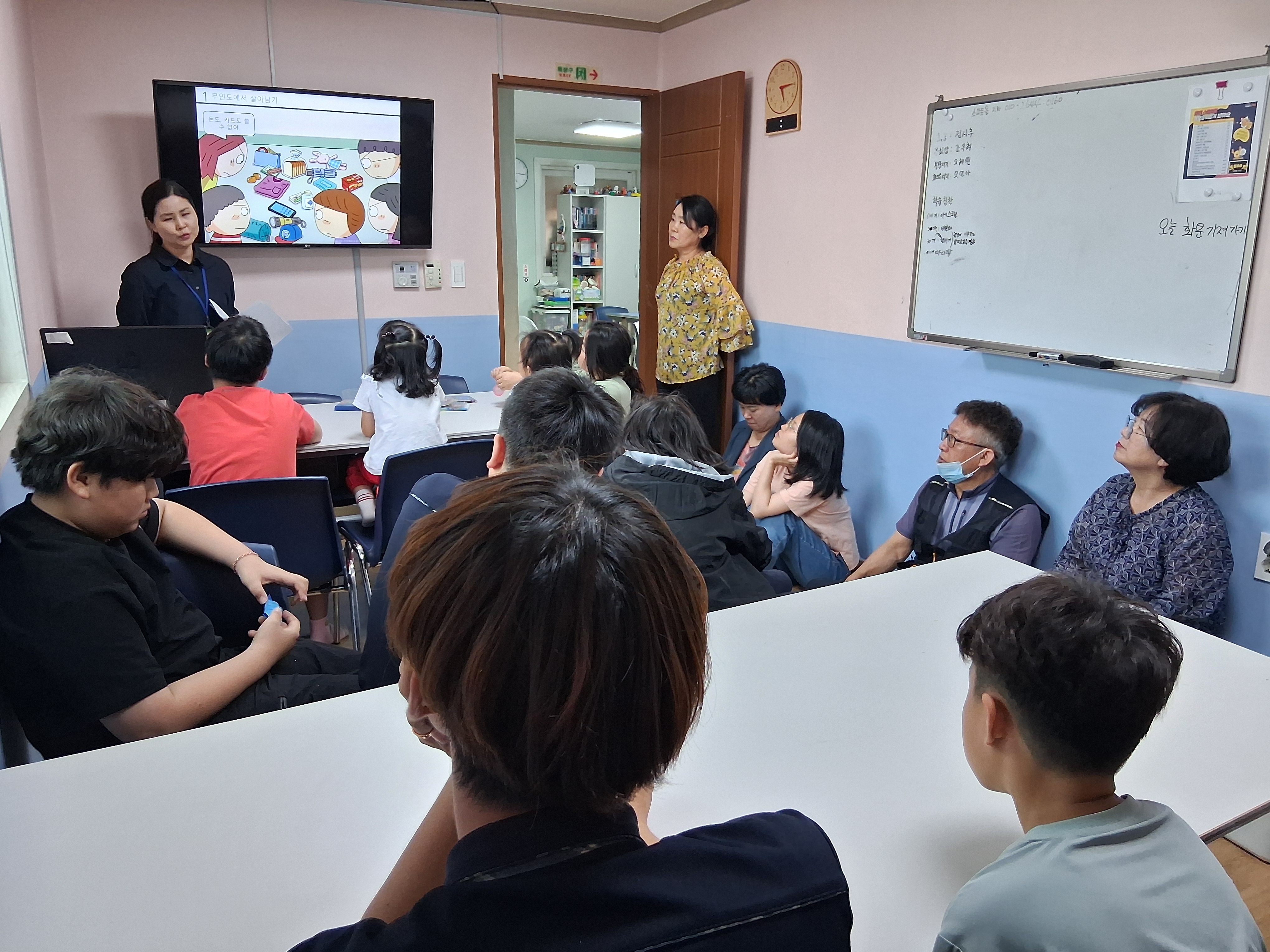 2025년 6월5일 아동 인권교육이 순창 청소년 상담센터에서 방인숙 강사 진행으로 무인도에서 1주일간 머무를때 꼭 필요한 것이 무엇인지 담아서 챙겨 가지고 가고 싶은 물건들을 기록해 보자는 활동을 세 팀으로 나누어서 이야기를 나누었는데 저학년의 친구들은 주로 섹생활 용품과 요리도구를 챙겼고 고학년의 친구들은 침낭과 의약품등 중요한 도구들을 담아두었다.