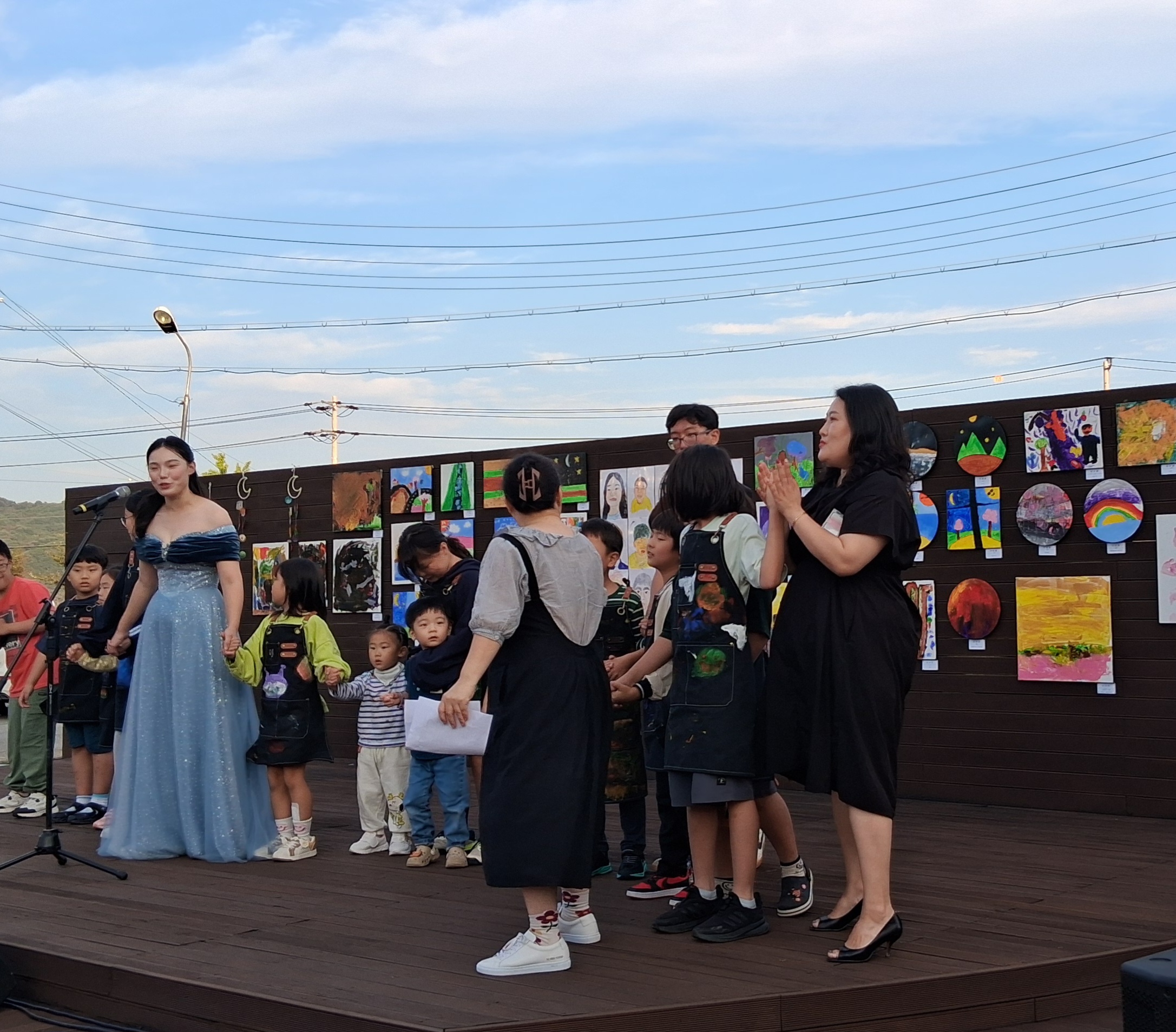 10월1일에 성악가를 초청하는 노래를 듣고 아동들이 좋아하는 음악도 듣고 그동안 아동들이 완성을 해 온 작품들을 제목을 붙여서 가족들과 동네 어르신들과 친지와 지인들을 초대하여 전시회를 했답니다.