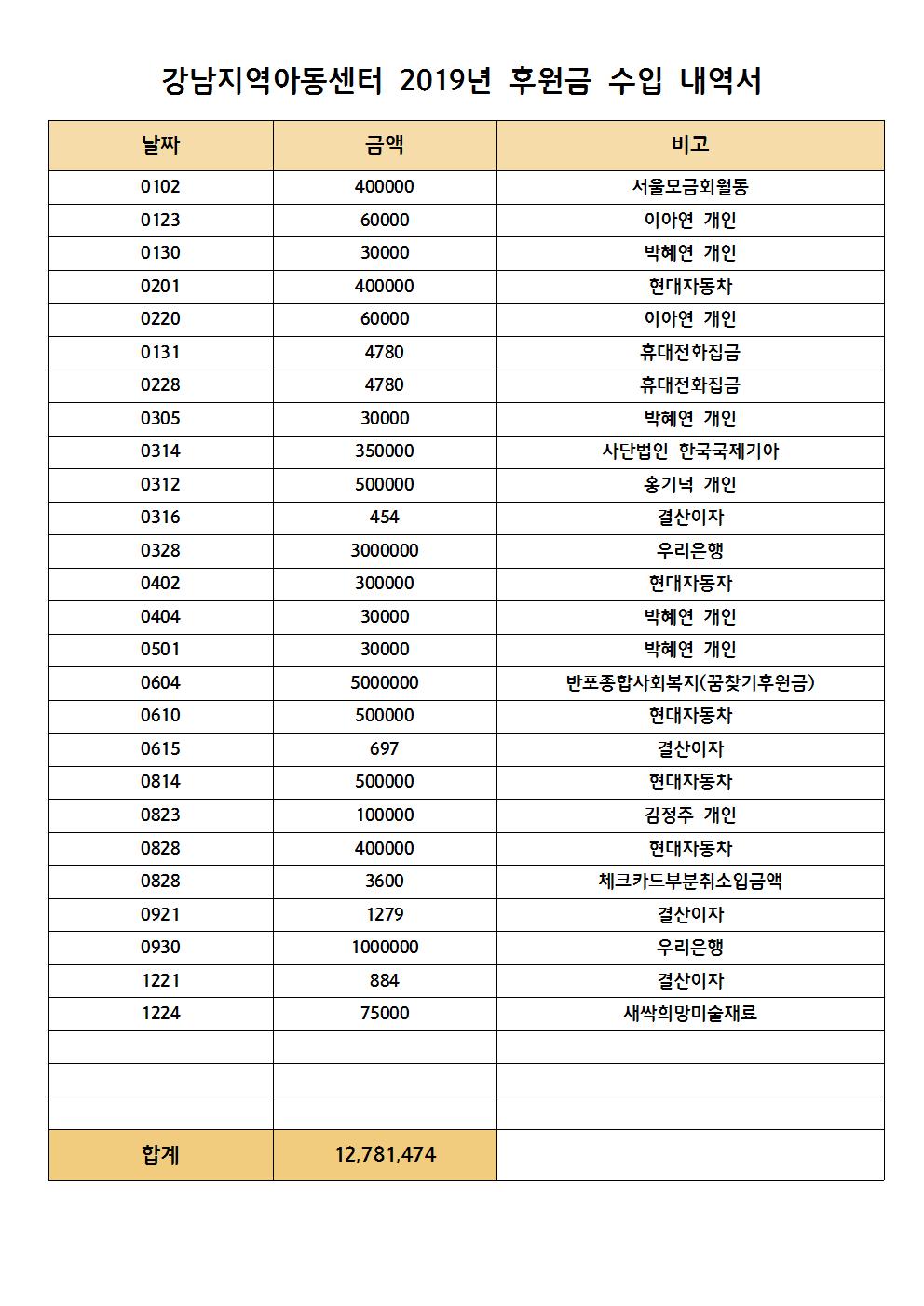 2019년 후원금 내역입니다. 함께 해주셔서 감사합니다.