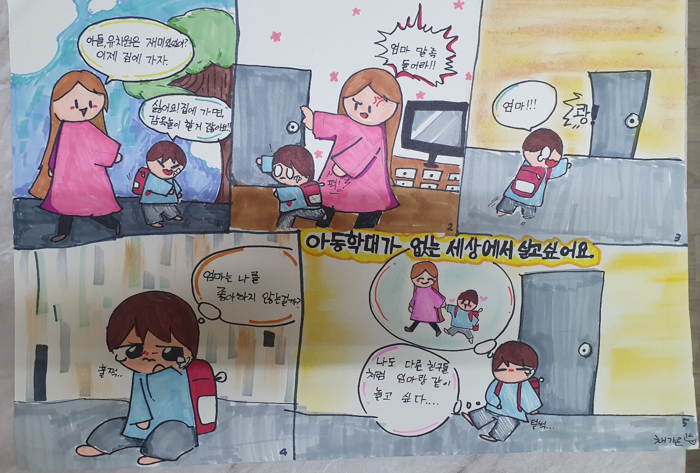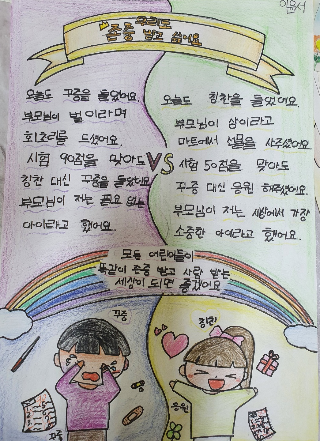 아동들의 작품을 바라보며 아동들이 누려야 하는 기본 권리를 옹호하고 지지함으로 "어린이가 웃는 세상이 되었으면 좋겠다“ 라는 생각을 했다.