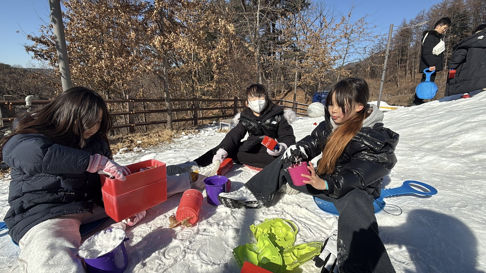 날씨가 너무추워 화천산천어축제를 취소하고 실내 체험으로 변경하여 놀자숲을 갔는데 우리 희망이들이 추위도 무색하게 실내보다 밖에 눈썰매를 더 즐기는것을 보고 10대가 부러웠습니다.
