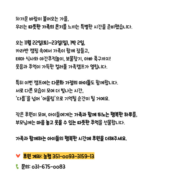 제목 : 컬러풀 가족캠프, 함께해요