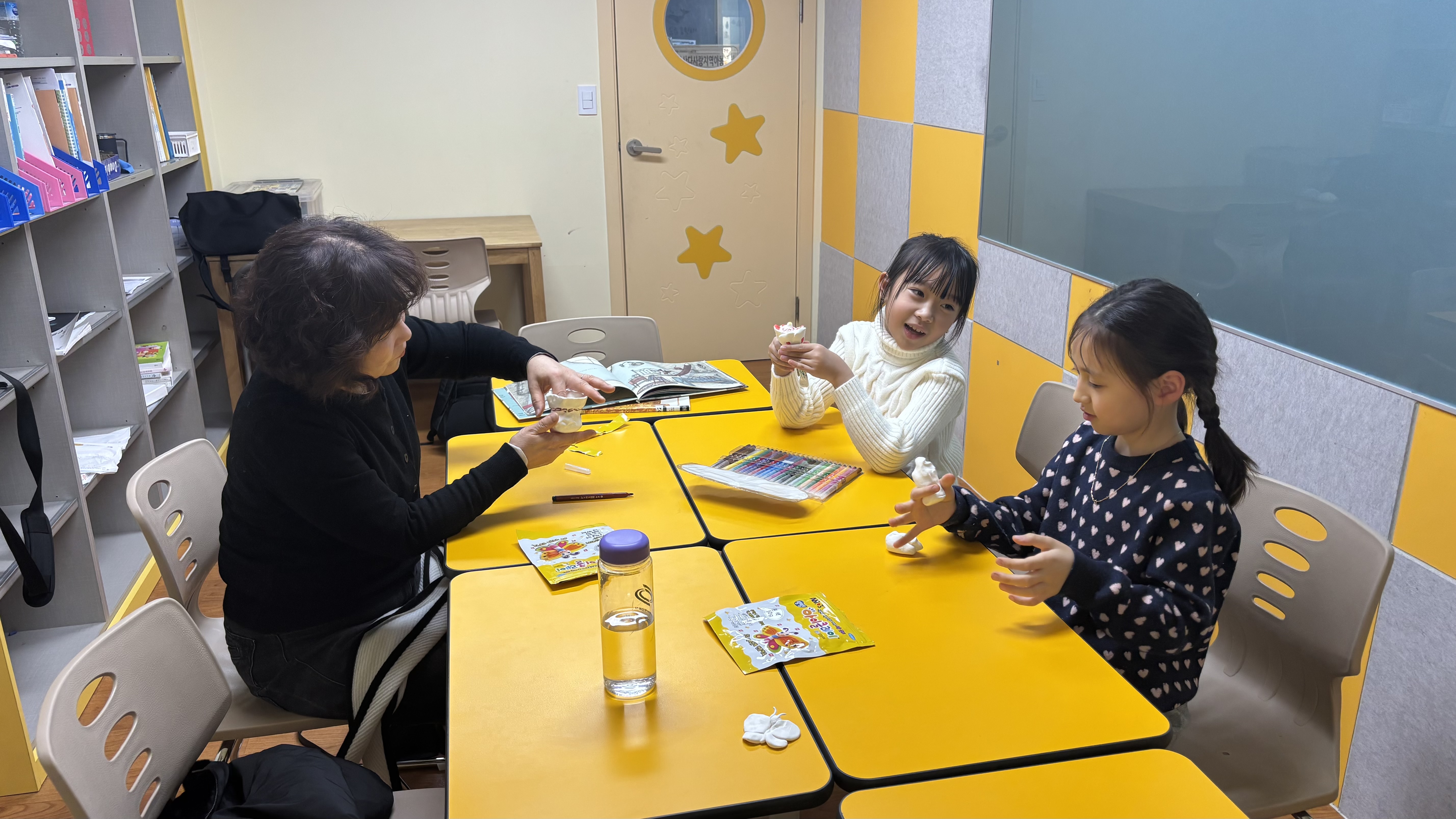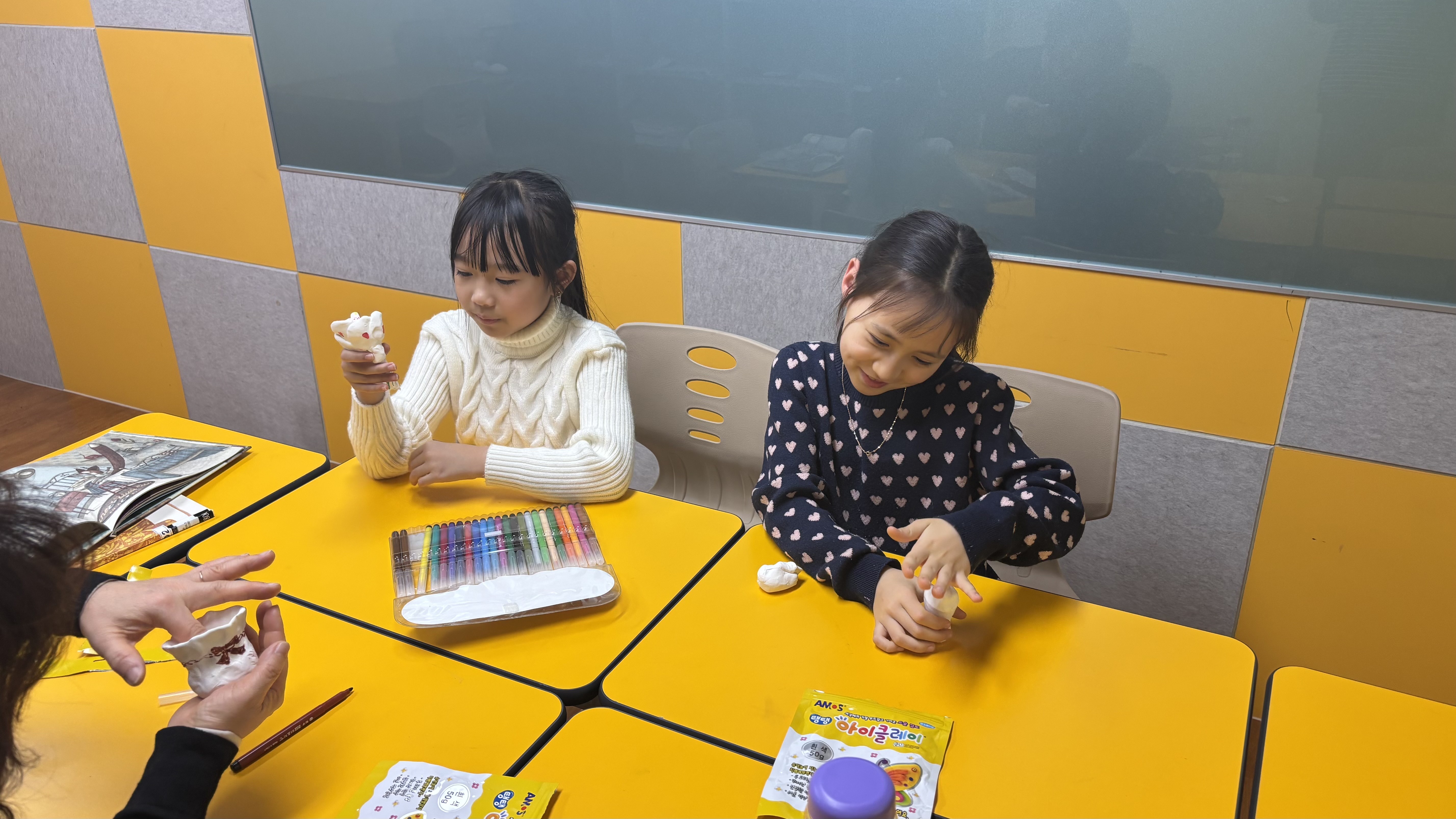 그래도 강사님과 이야기 하며 아이클레이를 만드는 모습이 보기 좋았네요!