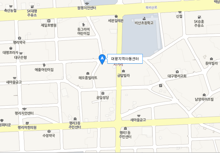 대평지역아동센터 | 대구광역시 서구 북비산로52길 17 평리동 2층 [지도보기] Tel : 053-567-3465 Fax : 053-522-3464 E-mail : hyunjh0724@hanmail.net