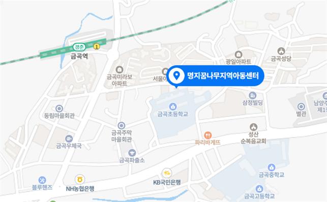 명지꿈나무지역아동센터 | 경기도 남양주시 사릉로34번길 24 금곡동 [지도보기] Tel : 031-593-1815 Fax : 031-593-1816 E-mail : ljm1746@hanmail.net