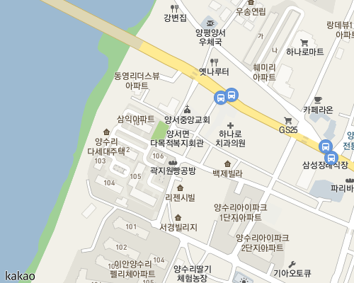 양수역에서 삼익아파트 앞 다목적복지회관으로 걸어보시면 20분 정도 걸립니다.