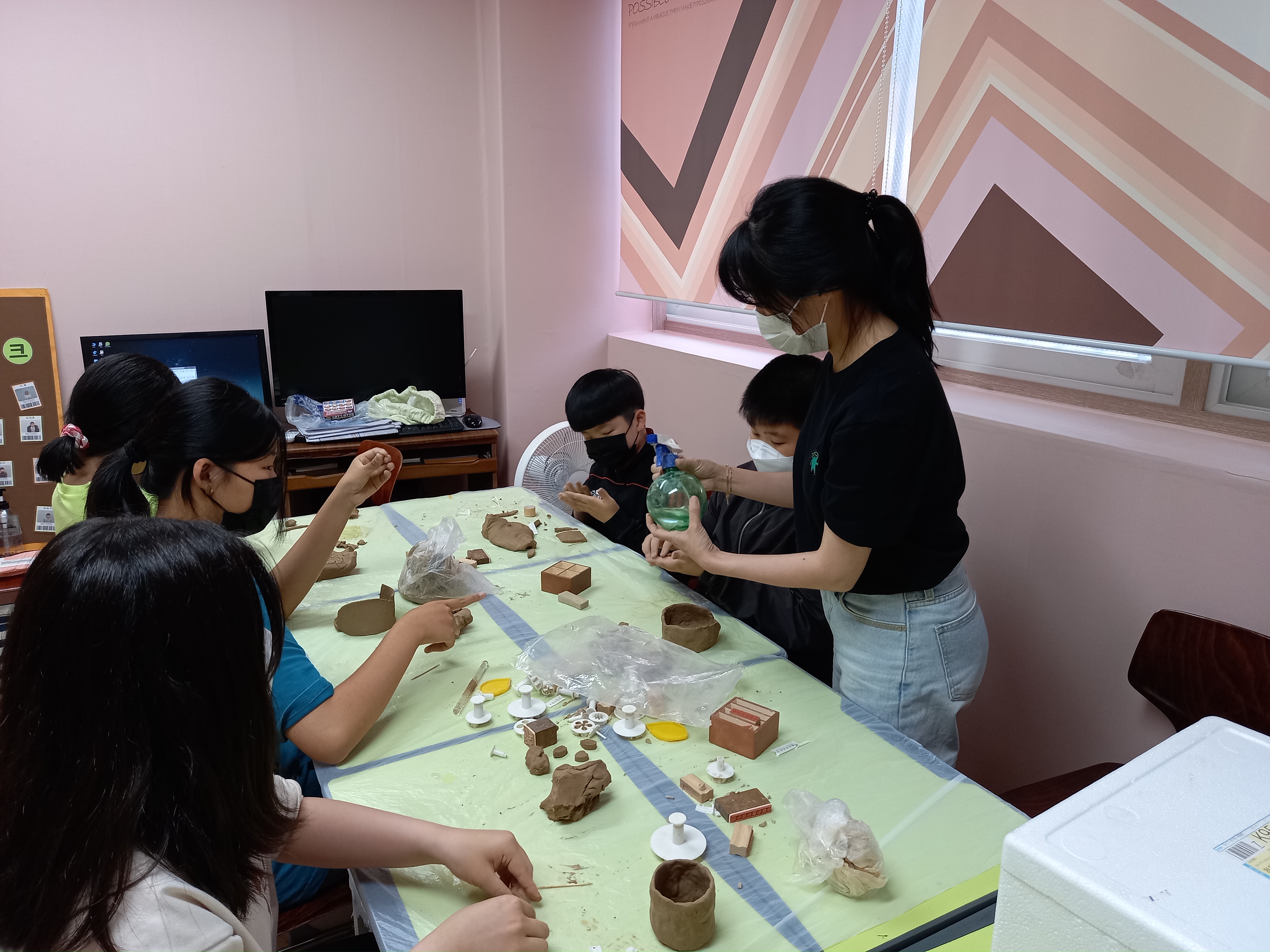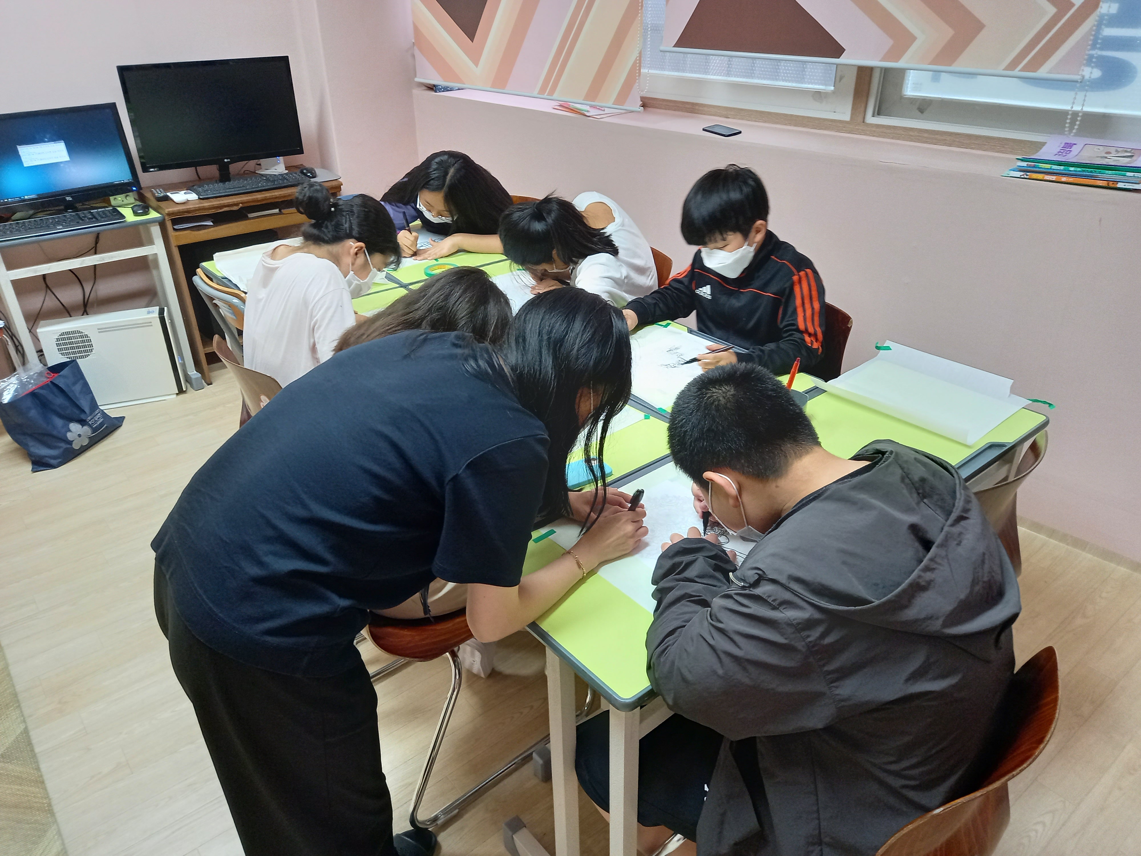 월 4회 집단미술치료프로그램에 참여하고 있는 야간보호아동들....