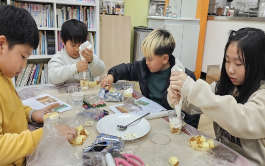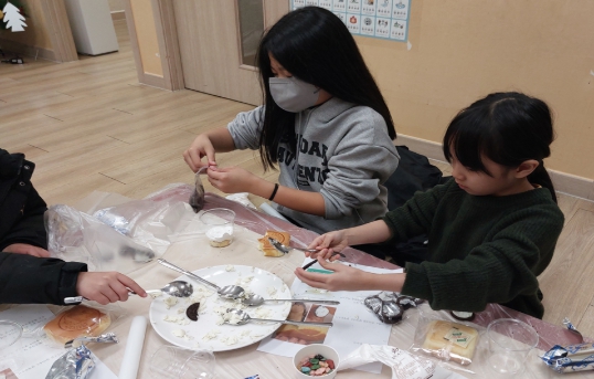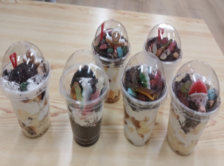 크리스마스를 기념하며 오레오 쿠키를 부수어 흙을 표현하고, 자갈 모양 초콜릿과 젤리로 자연 요소를 만들어 컵케이크를 만들었습니다. 과정에 큰 흥미를 보이며 자신만의 독창적인 화분 컵케이크를 완성해가면서 집중하며 즐겁게 활동하였습니다.