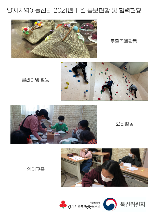양지지역아동센터 2021년 11월 홍보현황 및 협력현황