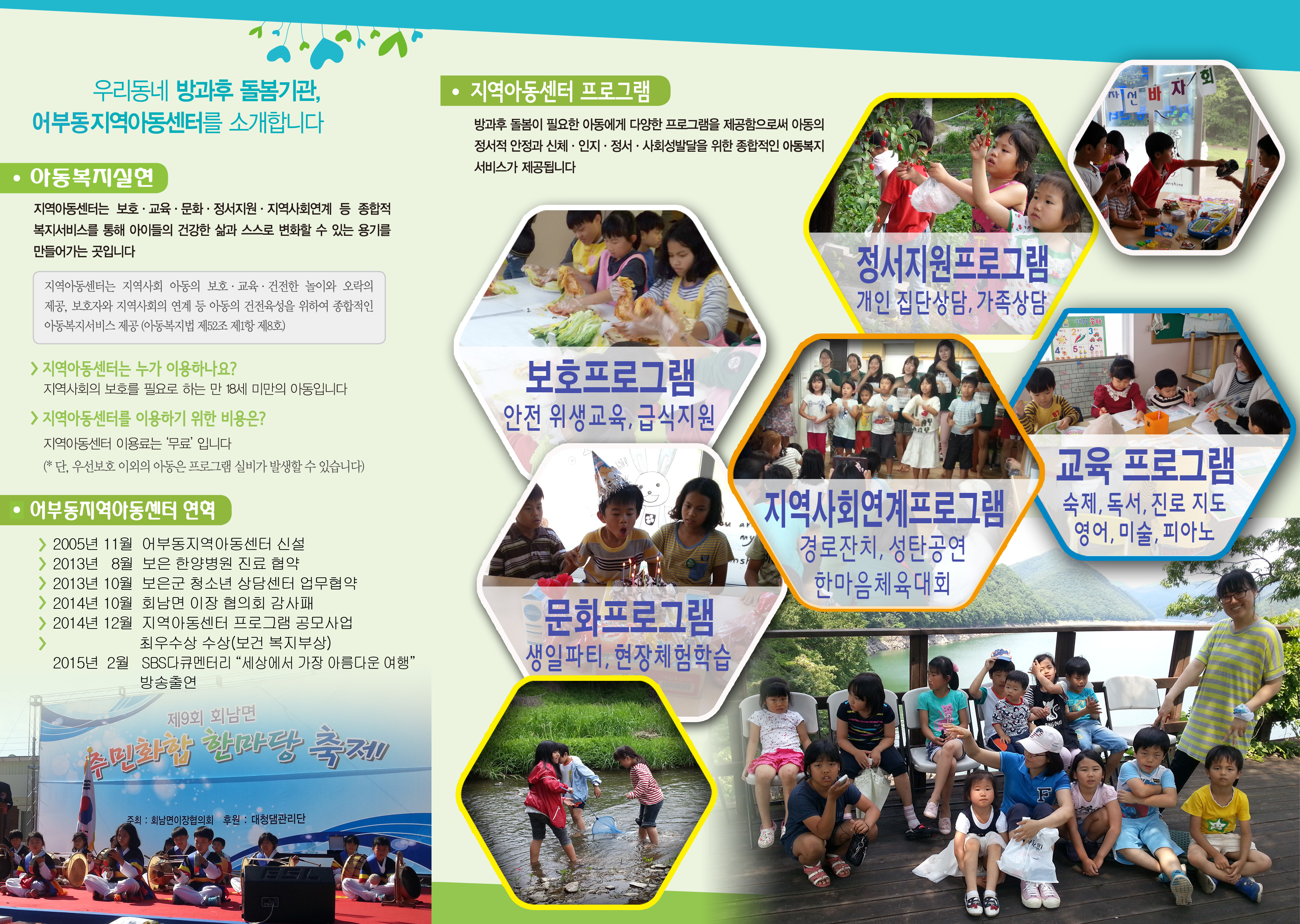 | 보호 | 급식제공 | 학기 중 : 간식 석식 제공 방학 중 : 간식, 중, 석식 제공 | 전원 | 주5회 |