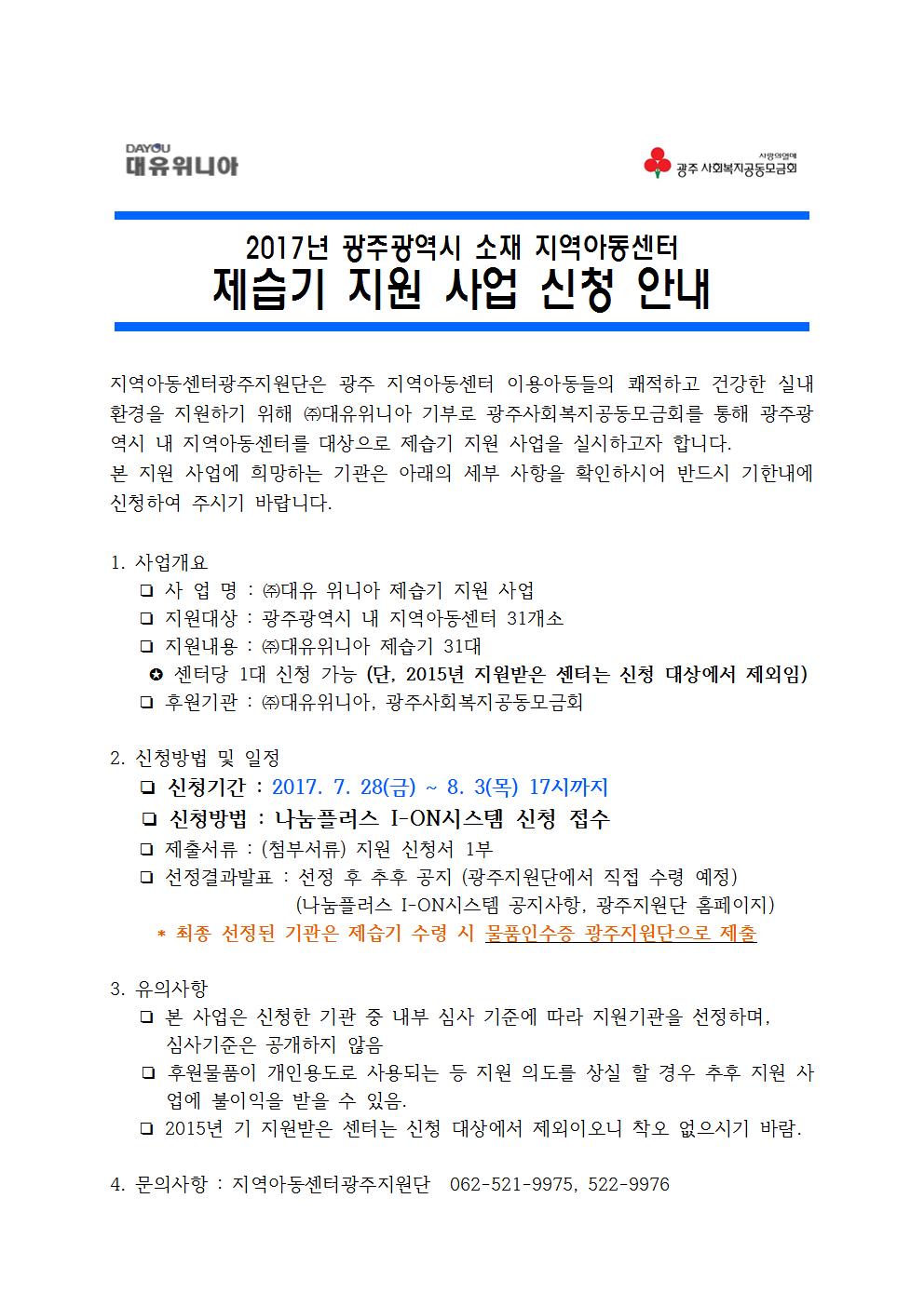 [물품] 2017년 지역아동센터 제습기 지원 사업 신청 안내