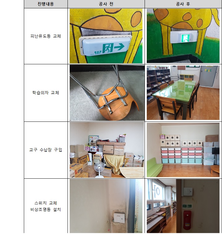 학습 환경개선이 이루어졌습니다. 좀 더 쾌적한 환경에서 아이들이 생활 할 수 있게 되었습니다.