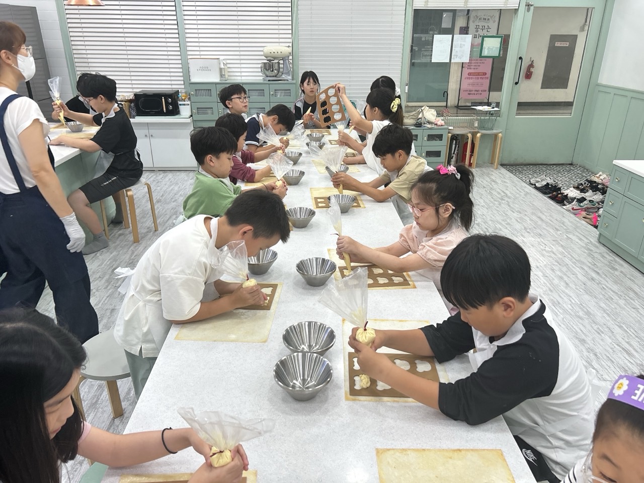 랑그드샤라는 샌드쿠키를 만들어보았습니다. 계량부터 반죽까지 전과정에 참여하여 자신만의 쿠키를 만들어보는 시간이 되었습니다.
