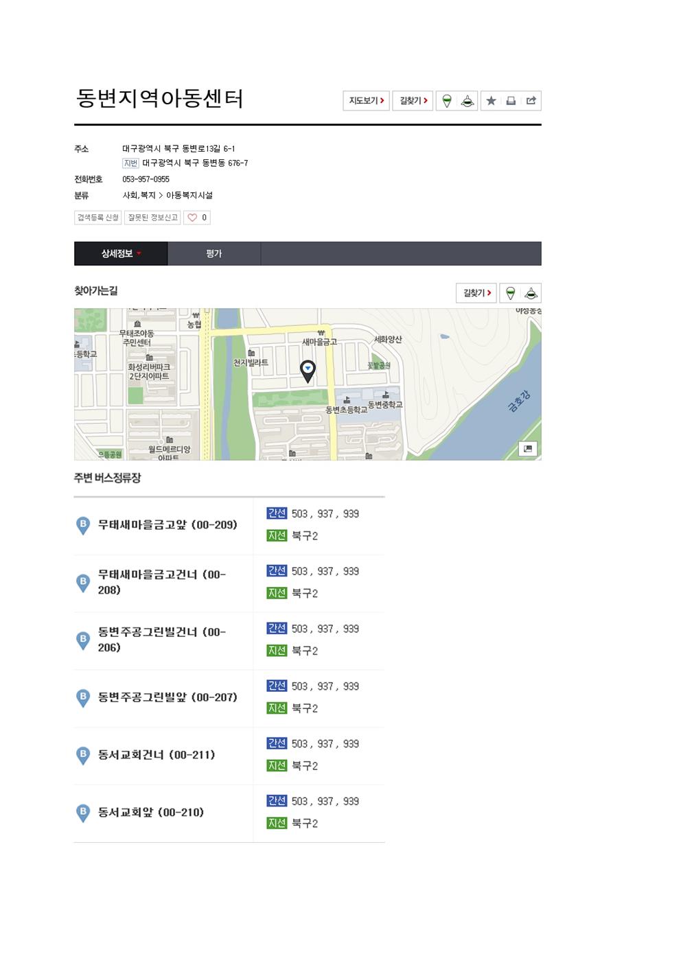 동변지역아동센터 | 대구 북구 동변로13길 6-1, 2층 (동변동) [지도보기] Tel : 053-957-0955 Fax : 053-955-0956 E-mail : angel7953@naver.com