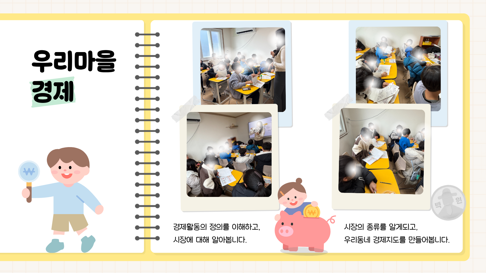 우리 마을에서 이루어지는 경제 활동을 배우고, 마을에서 경제 활동이 이루어지는 곳을 탐색하여