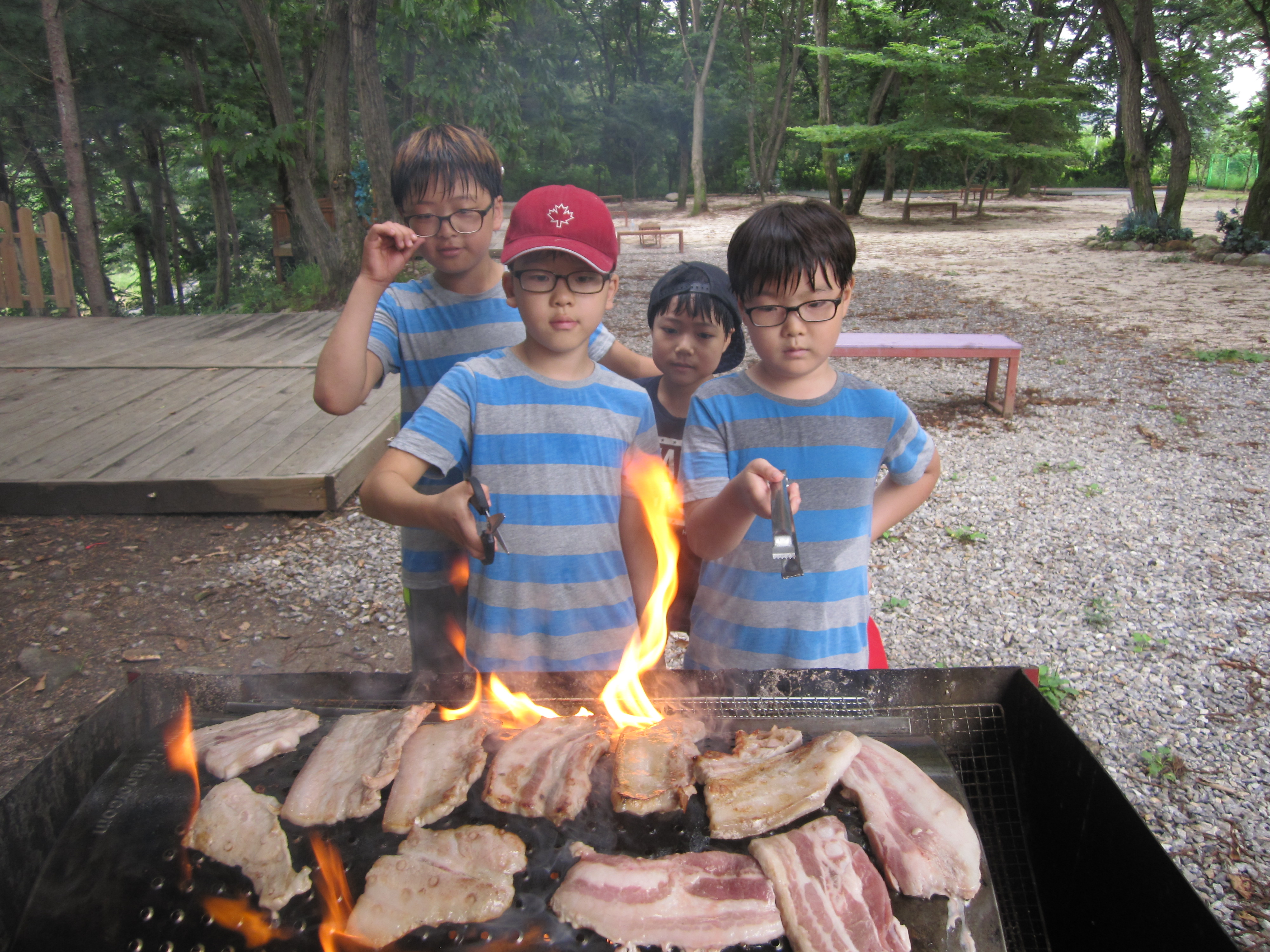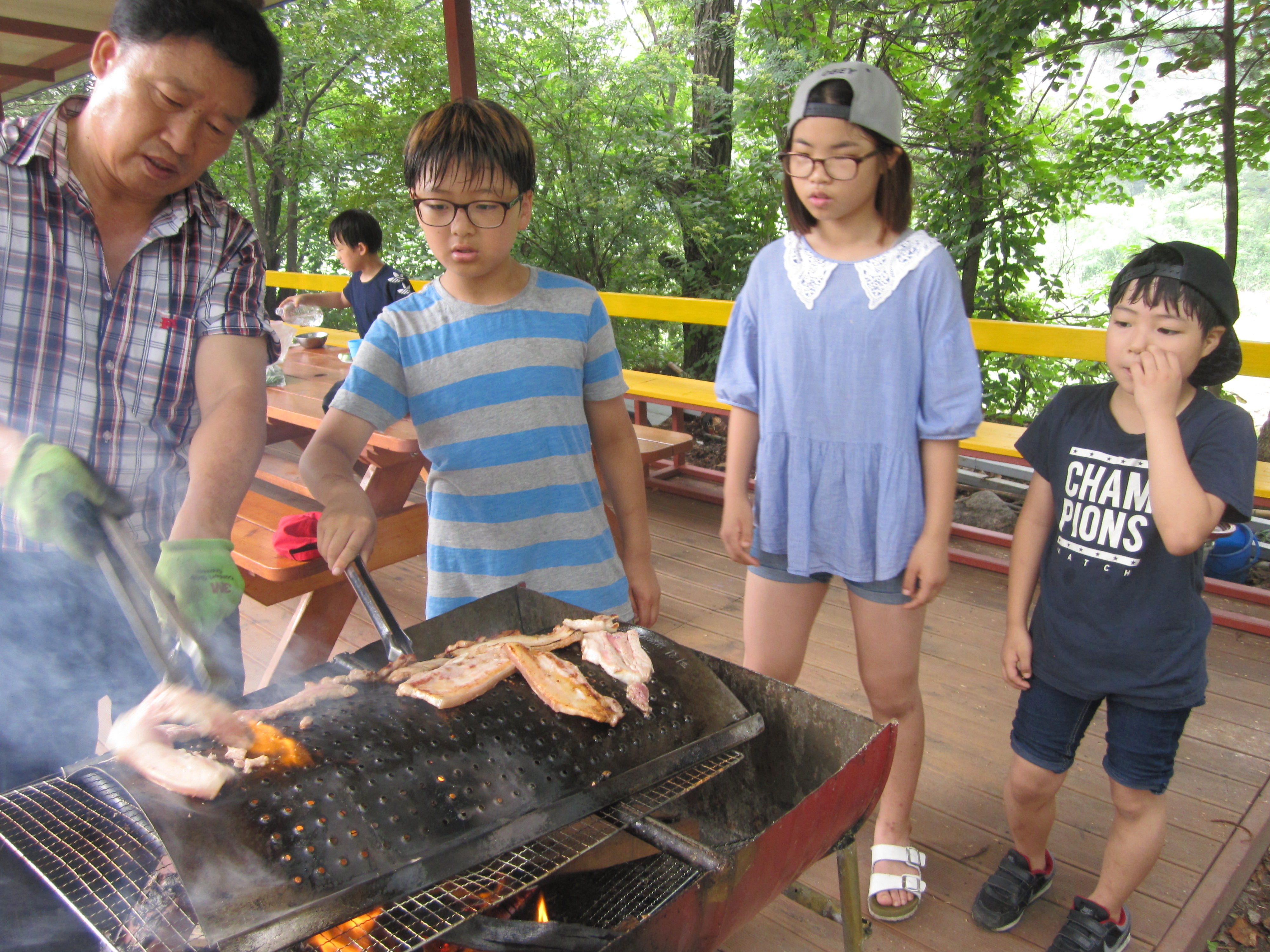 무더운 여름 캠프장에 가서 자연에서 마음껏 뛰놀며 개울에서 물고기 잡기와 물놀이를 한후 맛있는 삼겹살 바베큐 파티를 하며 즐거운 시간을 갖었습니다