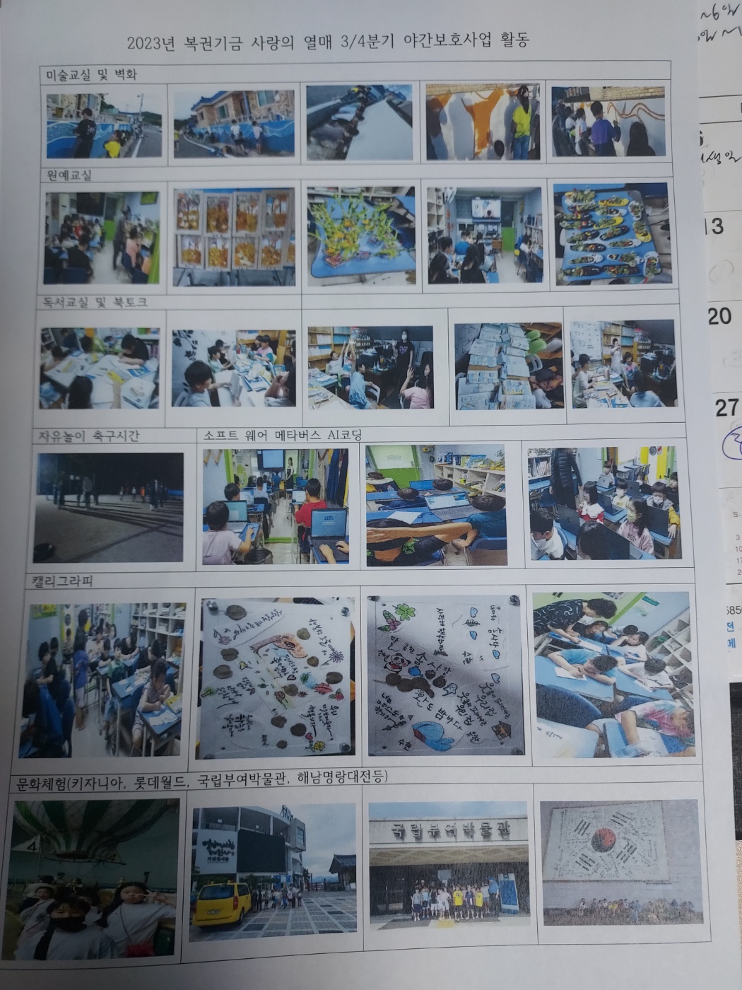 '23년 3분기 복권기금 사랑의 열매 야간보호사업 활동모음