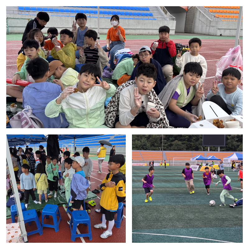 10월 월명체육관에서 축구페스티벌을 하였어요~ 아이들이 다른 아동센터 친구들과 함께 축구대회를 즐기고, 맛있는 음식도 먹었습니다