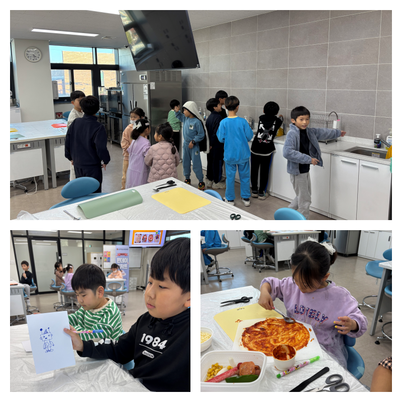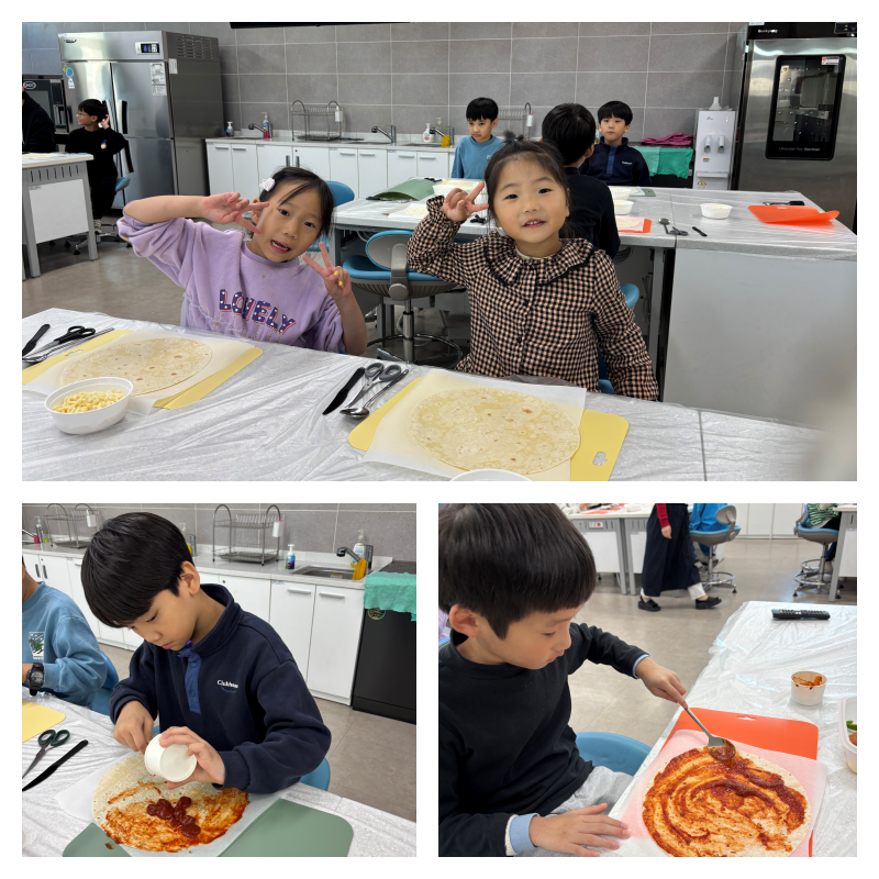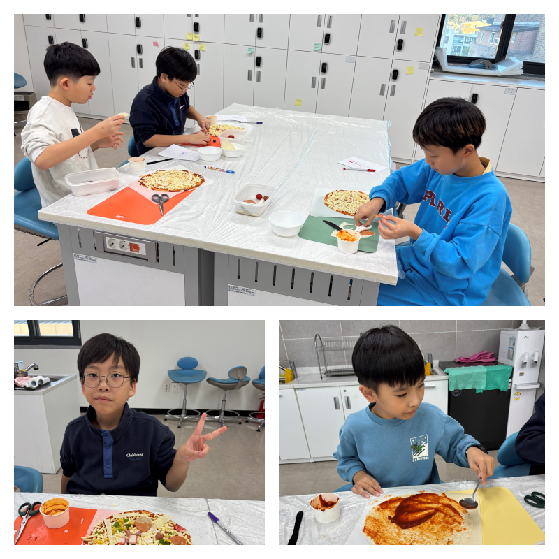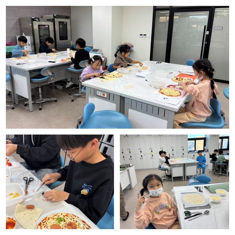 11월 3일 피자 만들기 수업을 하였어요~ 아이들이 피자를 스스로 꾸미고 먹었습니다~