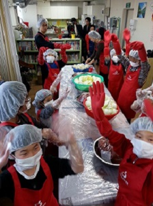 모두 힘을 합해 겨우내내 먹을 김치를 만들었어요~~