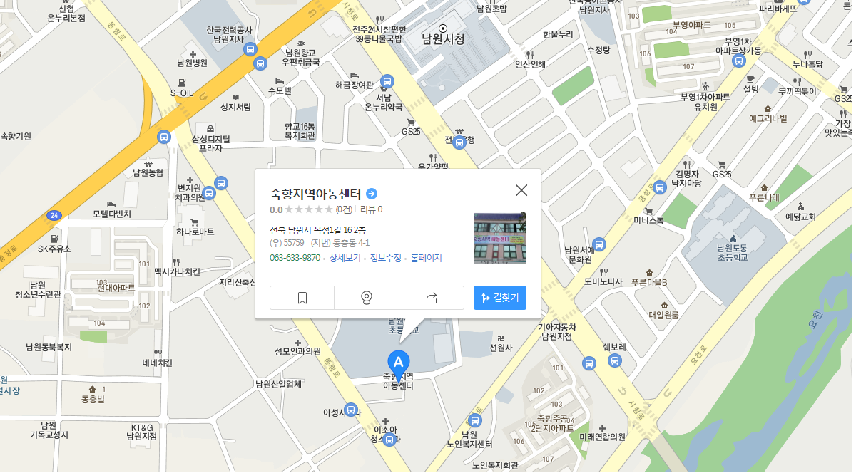 죽항지역아동센터 | 전라북도 남원시 옥정1길 16 2층 (동충동) [지도보기] Tel : 063-633-9870 Fax : 063-625-9842 E-mail : dobagi-an@hanmail.net