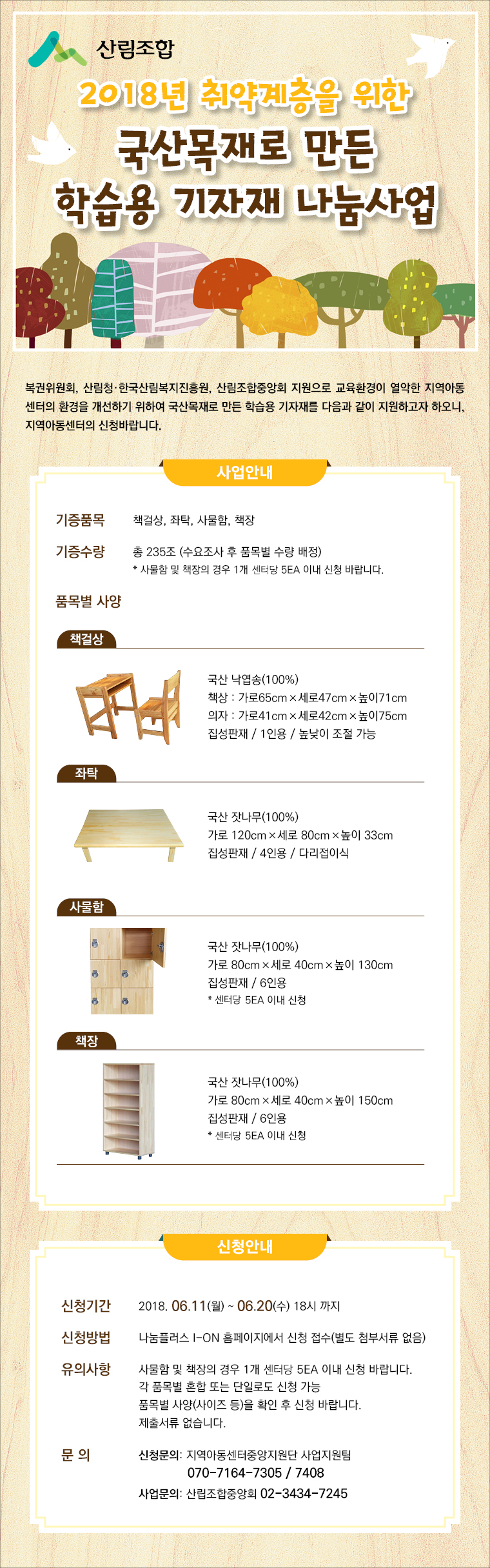 [프로그램] 2018년 취약계층을 위한 국산목재로 만든 학습용 기자재 나눔 신청안내