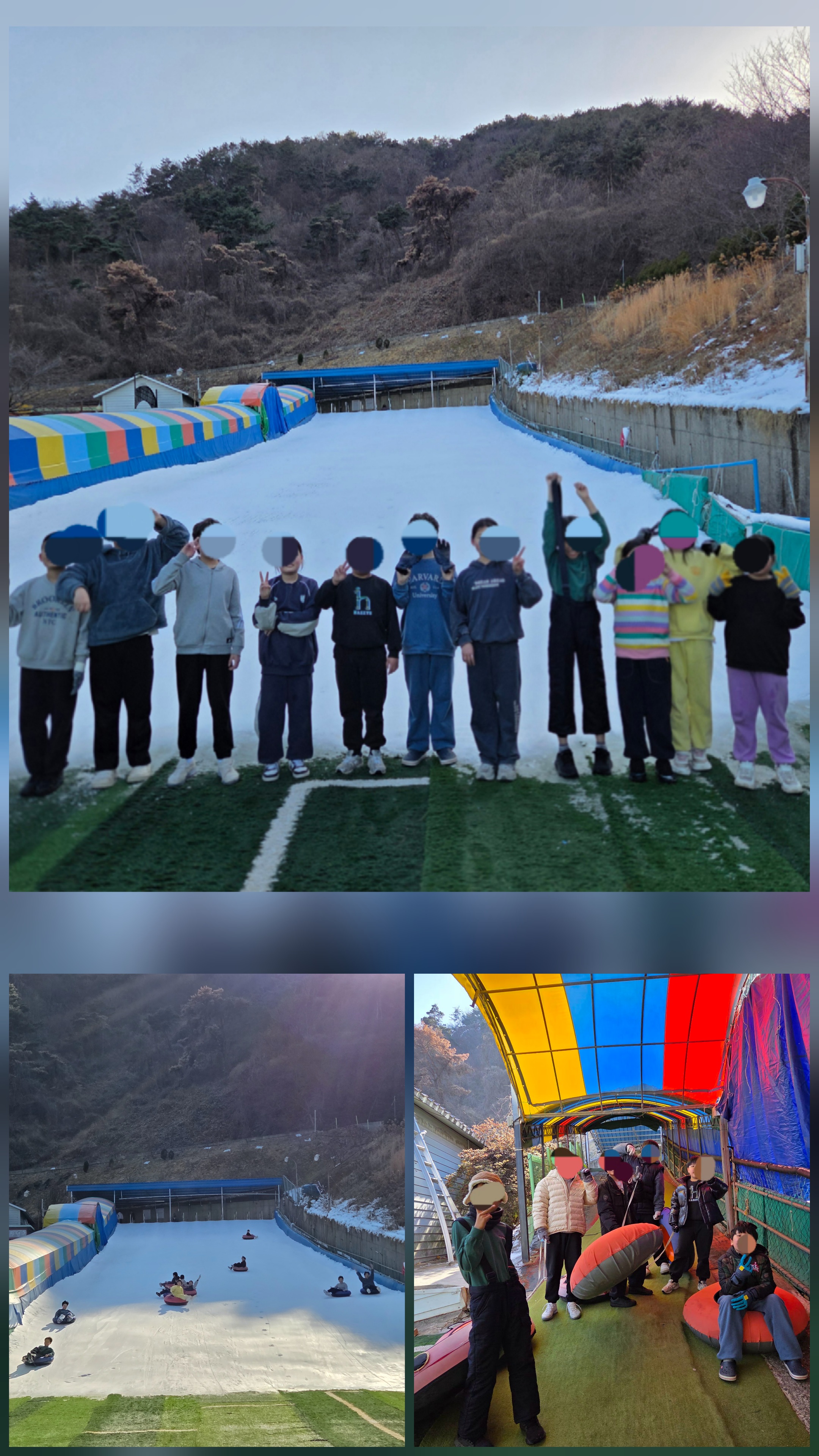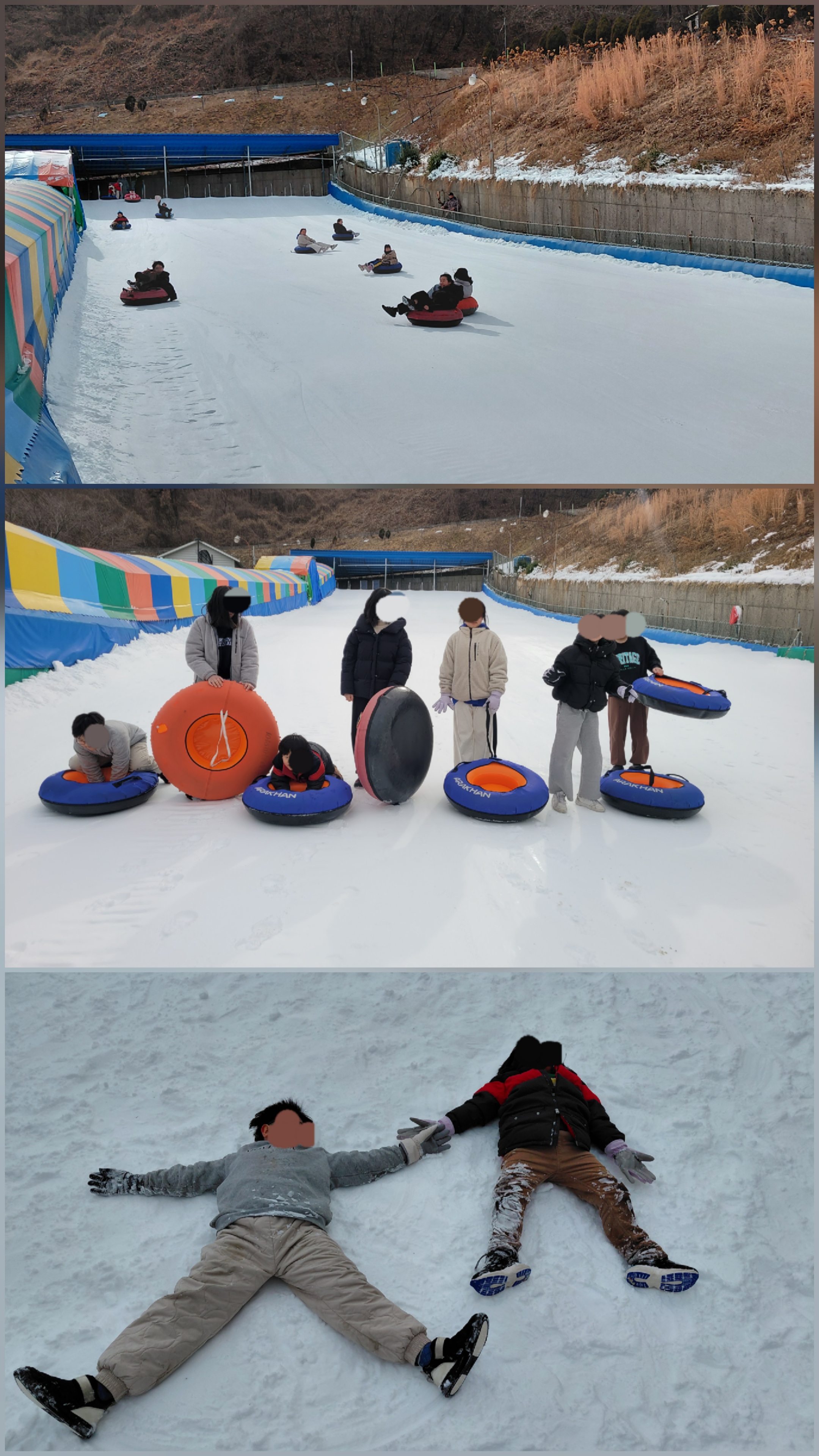 1월 27일, 1월 30일 눈썰매장 체험을 하였습니다. 겨울철 계절 체험의 즐거움을 제공함과 동시에 또래와의 긍정적인 상호작용을 경험할 수 있는 의미있는 시간이었습니다.