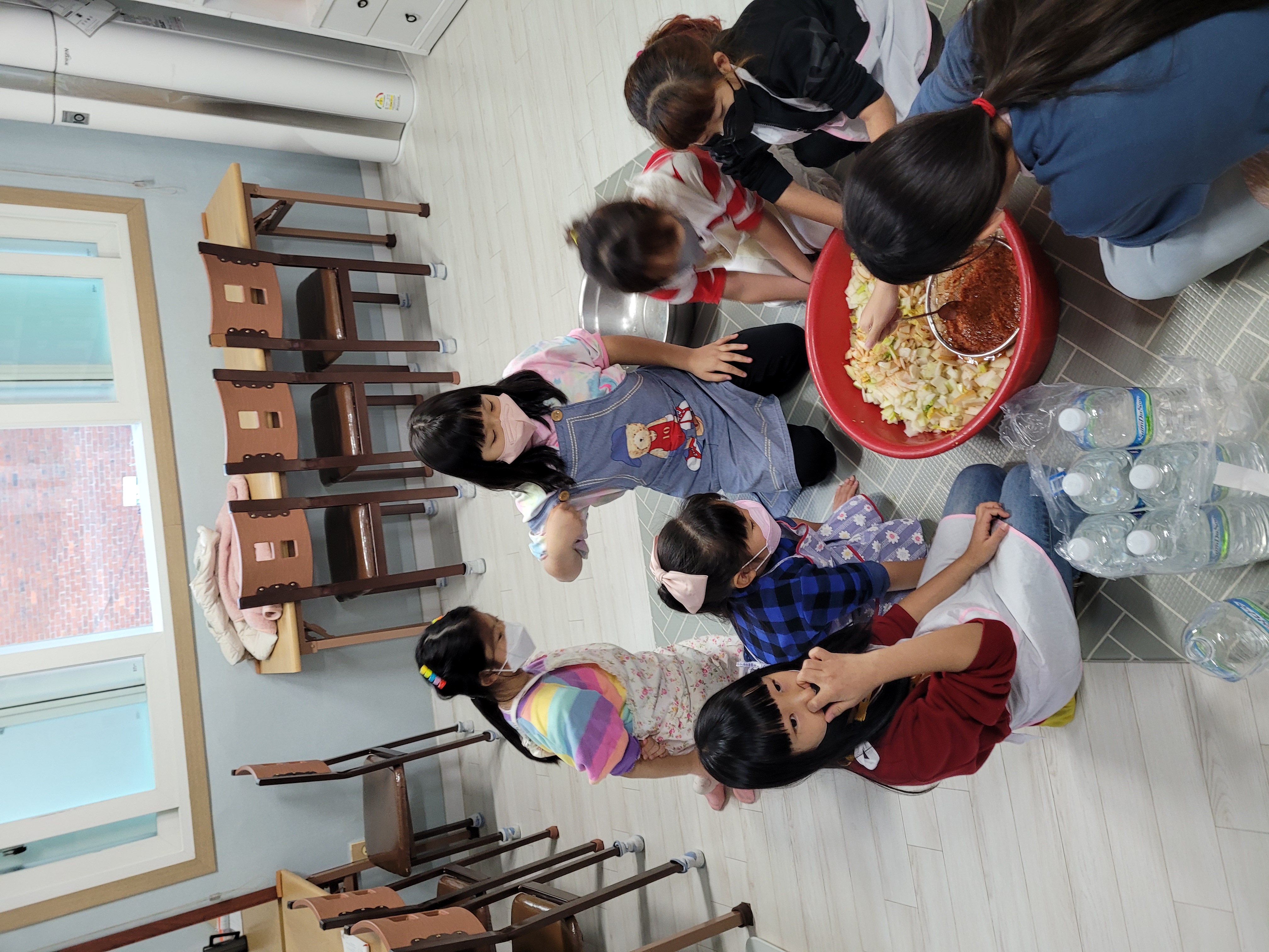 무를 썰고, 배추도 썰고 각종 양념을 넣어서 맛있게 냠냠