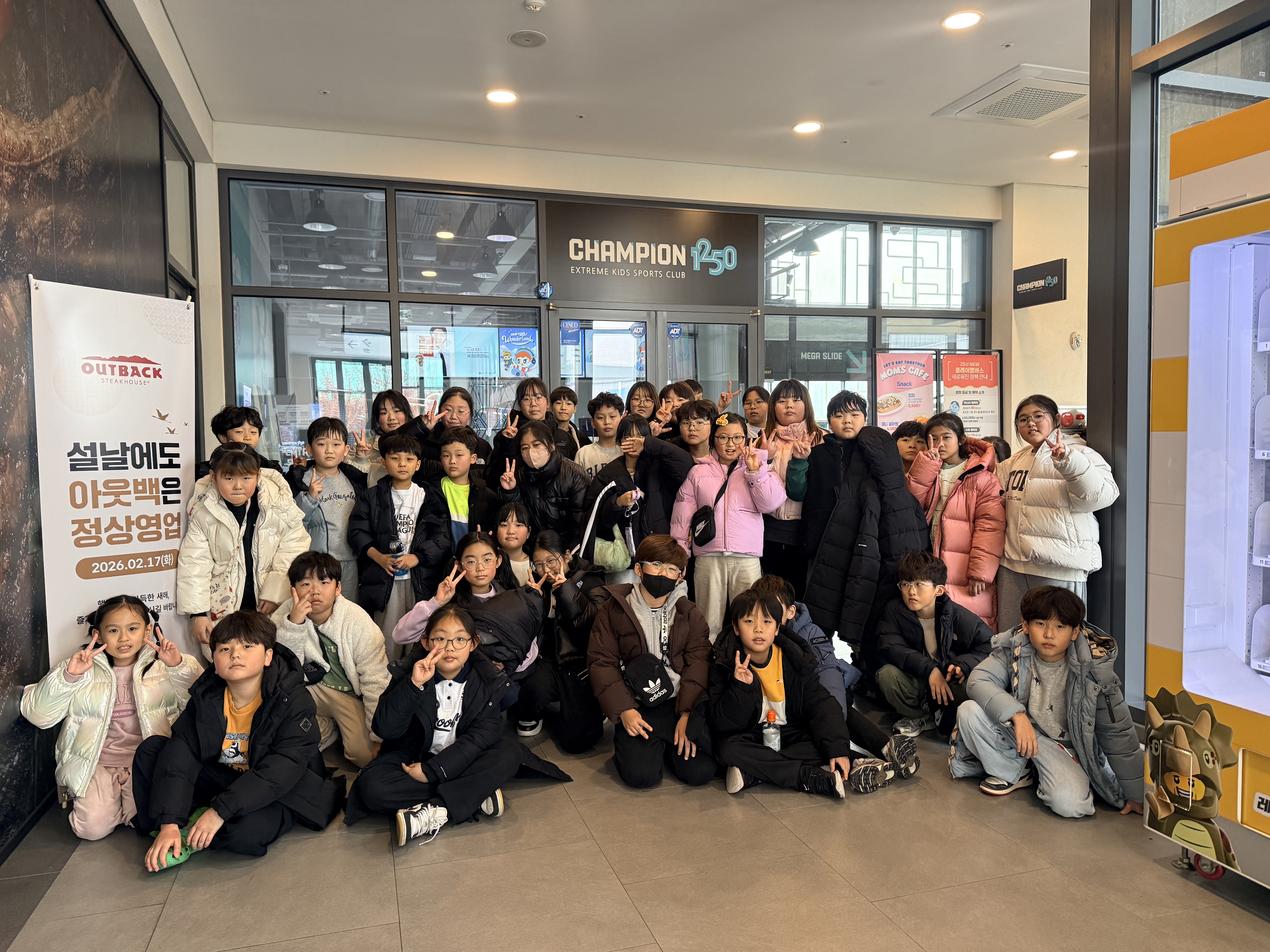 - 2월3일(화)에 학교 개학하여 작년 아동들의 욕구와 건의로 인해 개학 전날인 2월2일(월)에 현장체험학습으로 현대아울렛 내에 있는 키즈카페(챔피언1250)를 가기로 진행하였습니다.