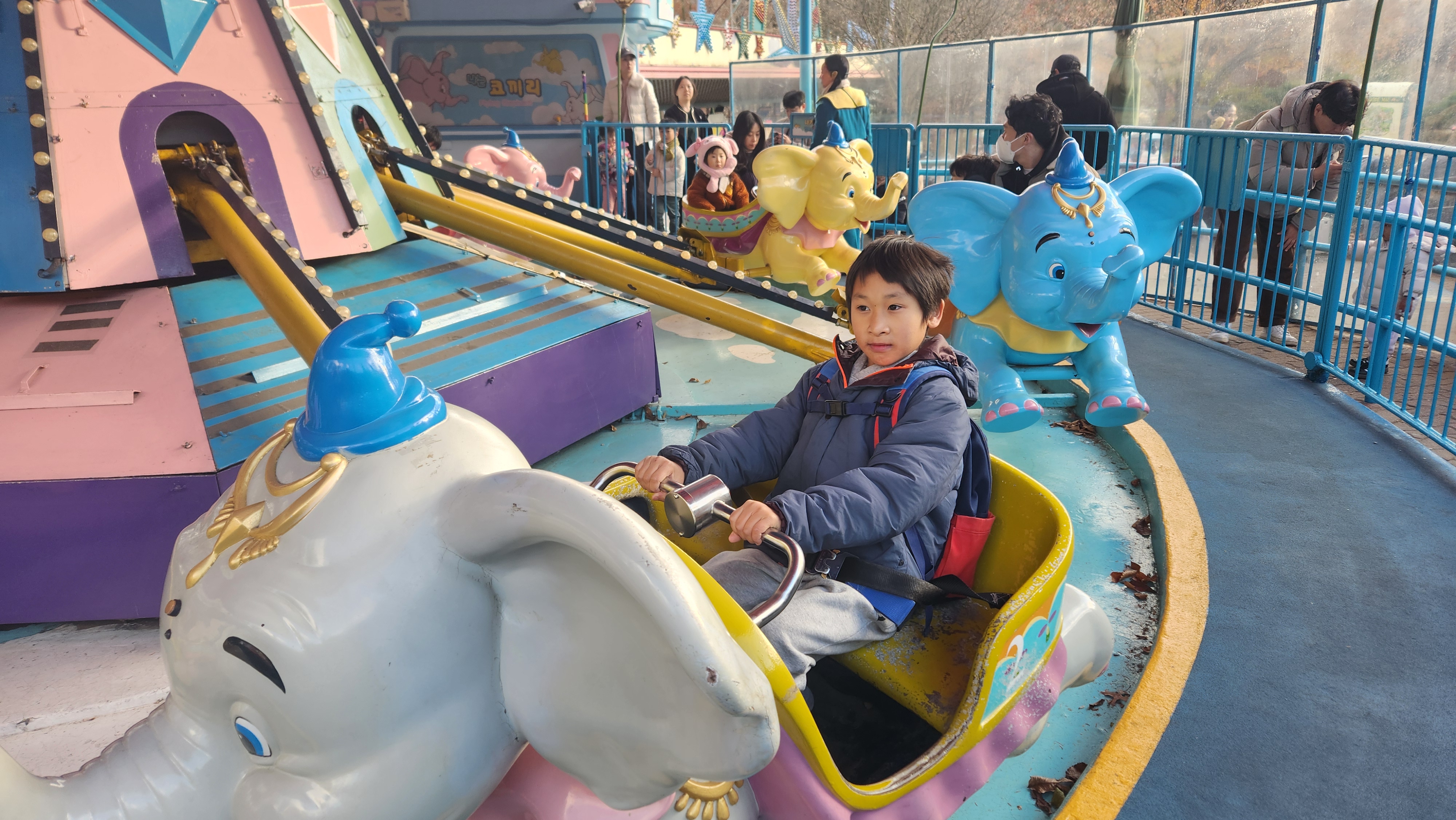 그래도 학기중에 와서 놀이기구는 많이 타고 갑니다.