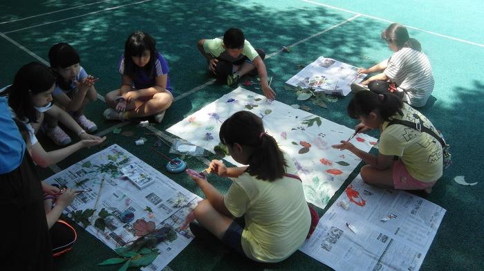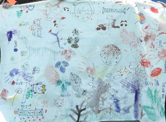 생명의숲 숲해설선생님께서 오늘은 커다란 광목천을 준비해 오셔서 숲을 꾸며보자 하십니다.