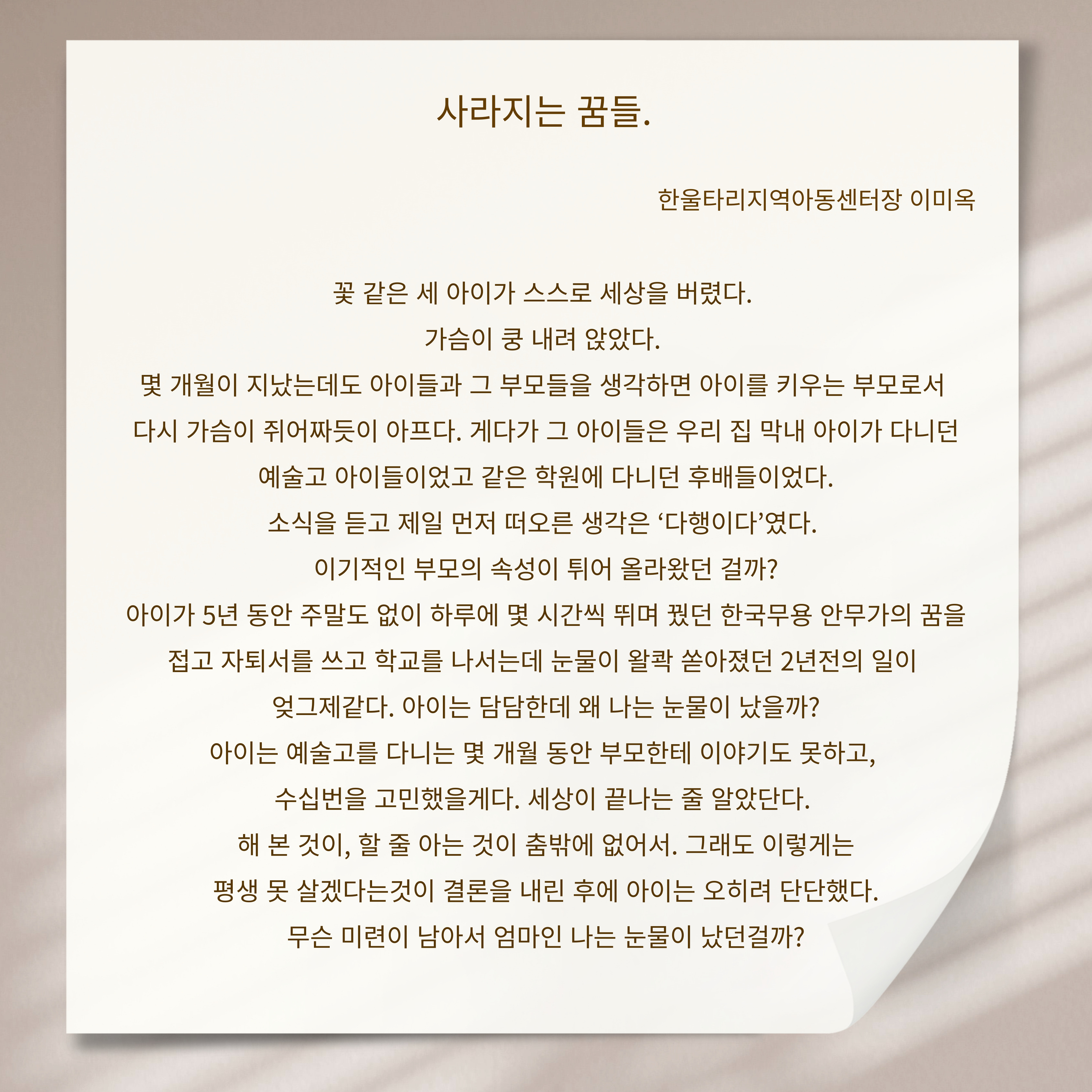 아이들의 소중한 이야기를 만나보세요