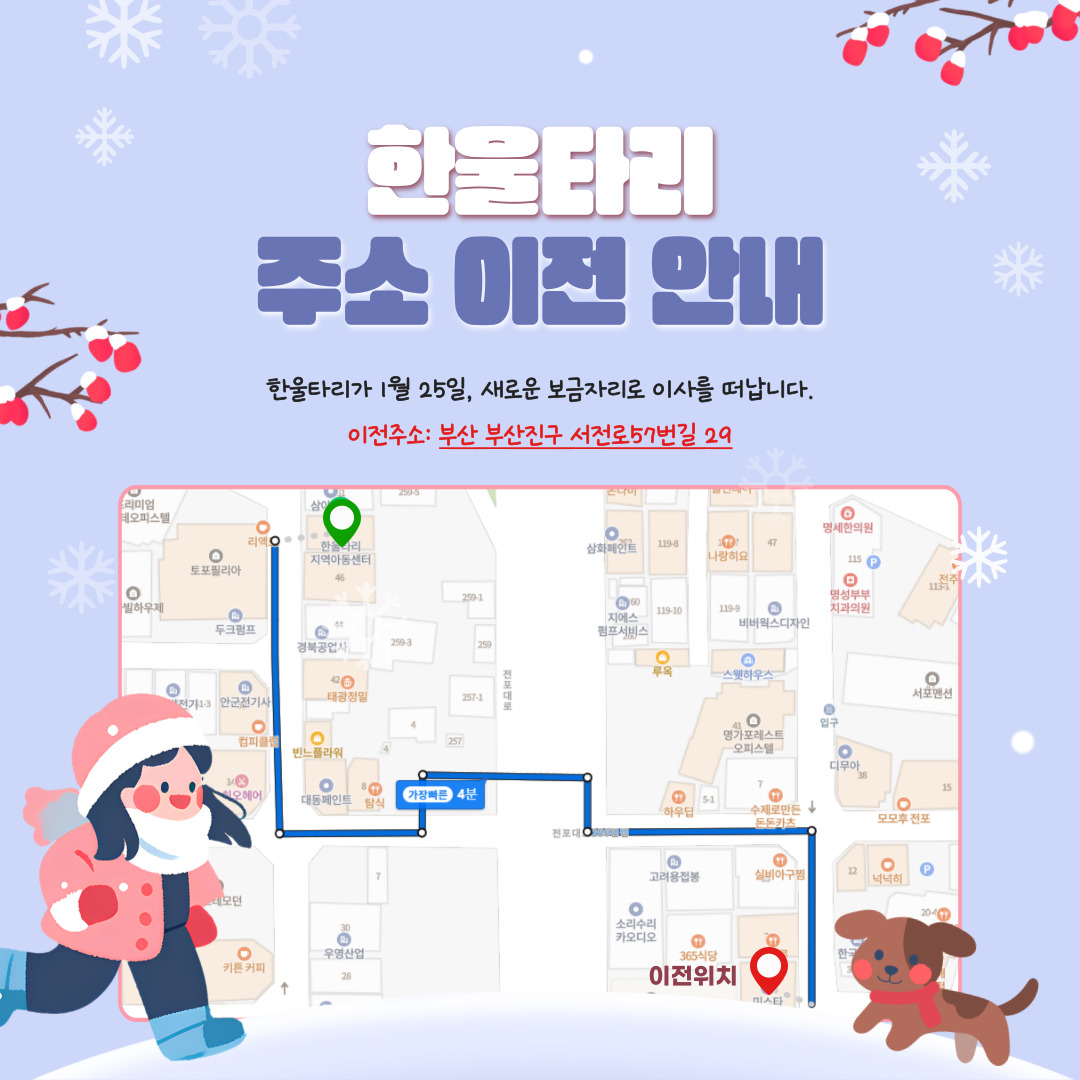 한울타리지역아동센터 | 부산광역시 부산진구 서전로57번길 29 효명빌딩 4층 (전포동) [지도보기] Tel : 051-805-6036 Fax : 051-805-6038 E-mail : hanultari1991@hanmail.net