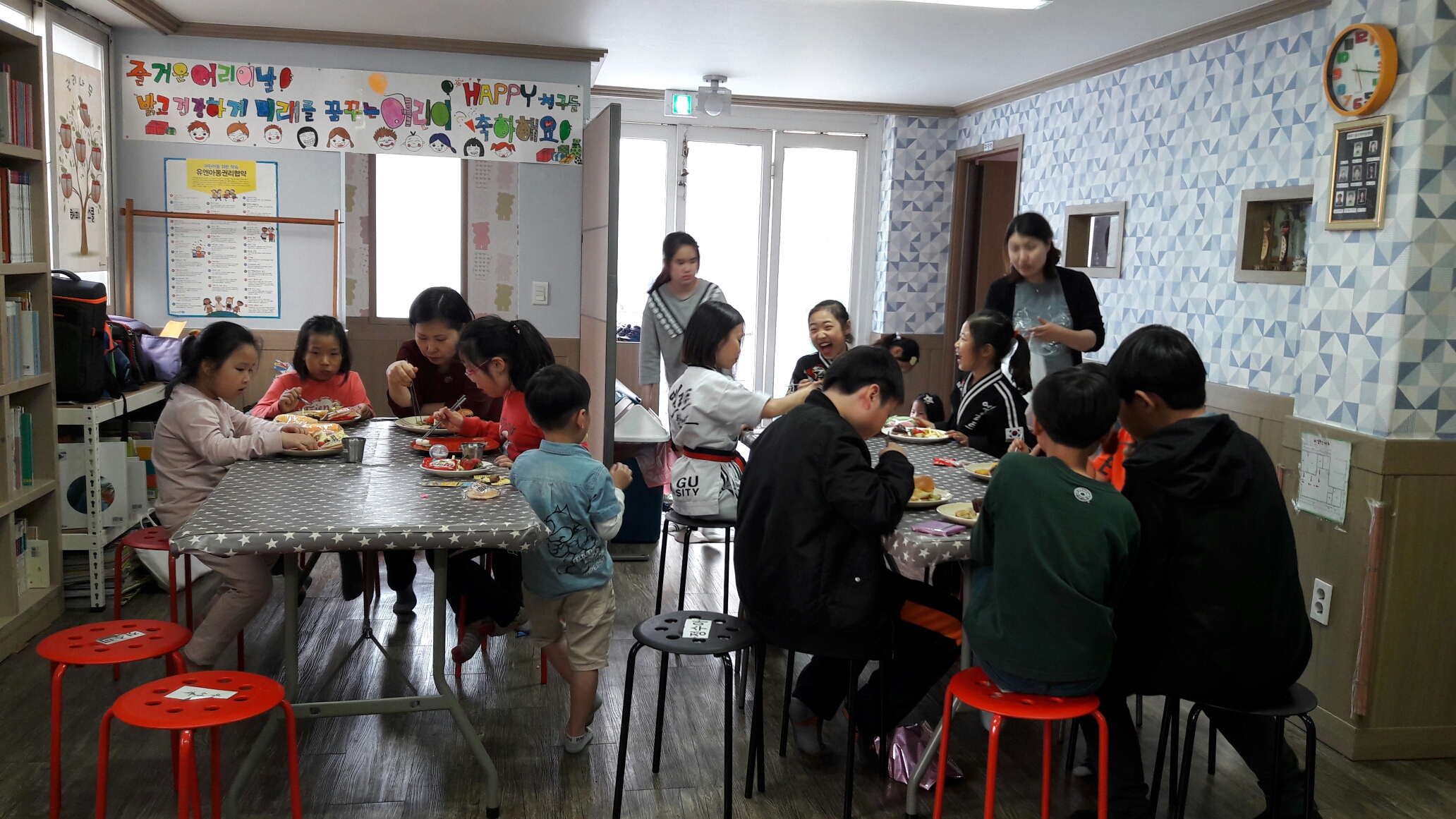 5월 어린이날을 맞아 어린이날 행사를 센터내에서 주최하였다. 아이들이 맛있는 음식과 갖고싶은 선물을 받아서 모두들 즐거워했다^^