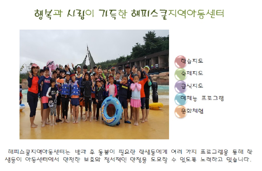 해피스쿨지역아동센터에 오신 걸 환영합니다!