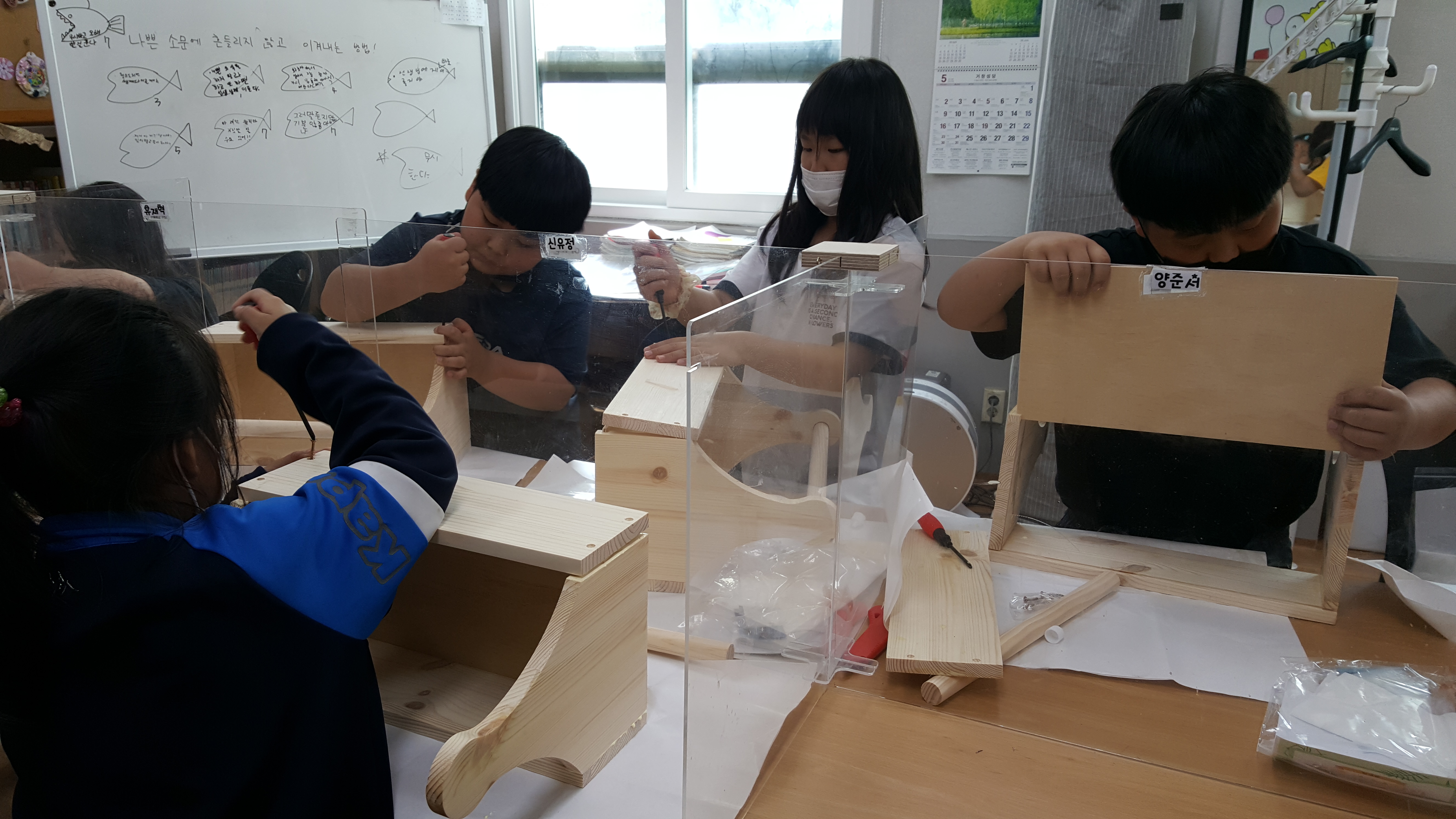 코로나로 바깥활동을 많이 하지 못해 답답해 하는 아이들을 위해 만들기 체험프로그램을 지원받아 진행하였습니다.