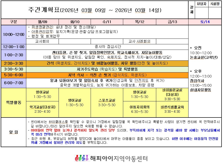 주간계획표(26.03.09~26.03.14)