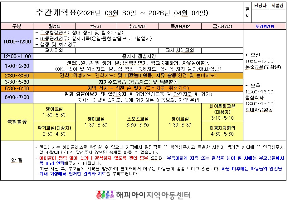 주간계획표(26.03.30~26.04.04)