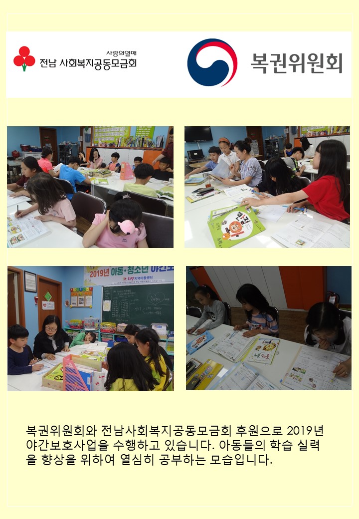 저희 희망지역아동센터에서는 전남사회복지공동모금회와 복권위원회 지원으로