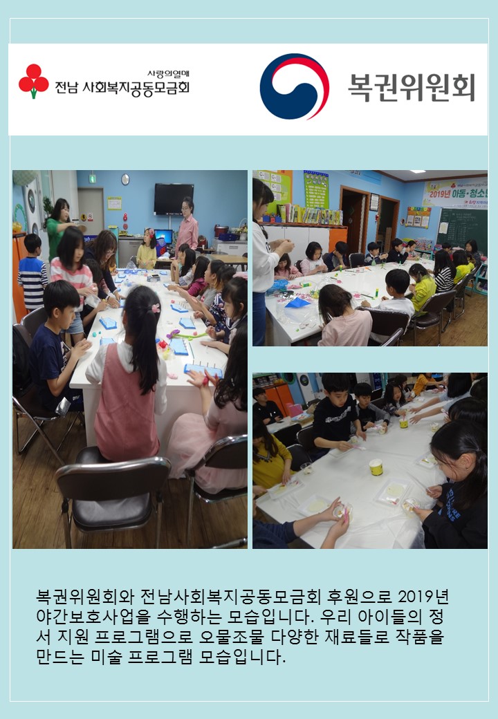 저희 희망지역아동센터에서는 전남사회복지공동모금회와 복권위원회 지원으로