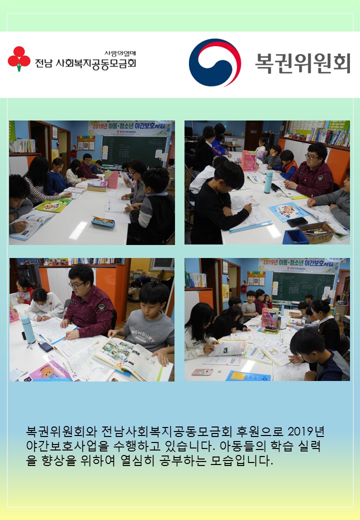 복권위원회와 전남사회복지공동모금회 지원으로 아동 교과학습지도를 하고 있는 사진 올립니다.