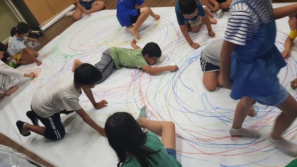 댄스드로잉 수업에 참여하고 있는 모습입니다.