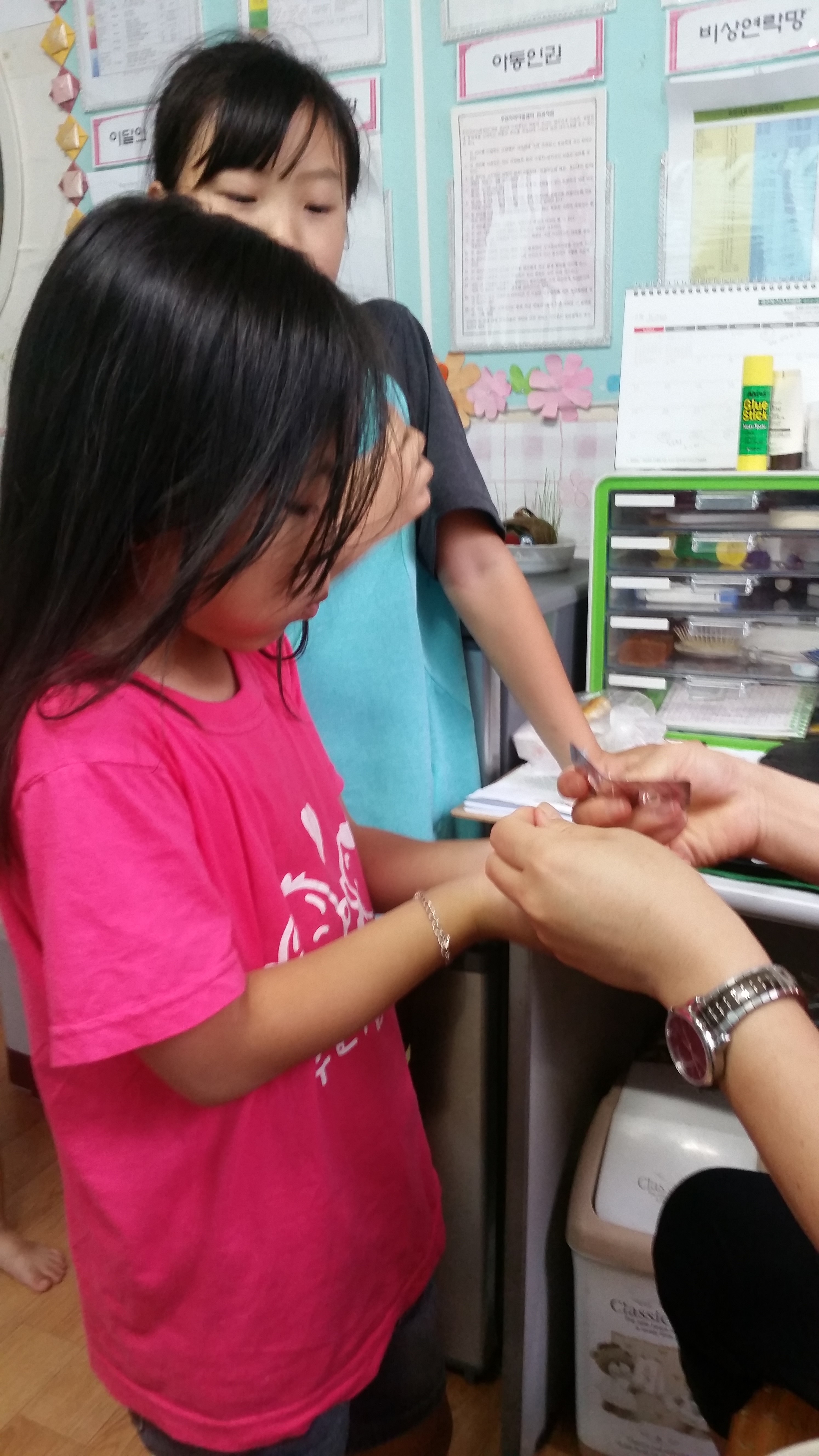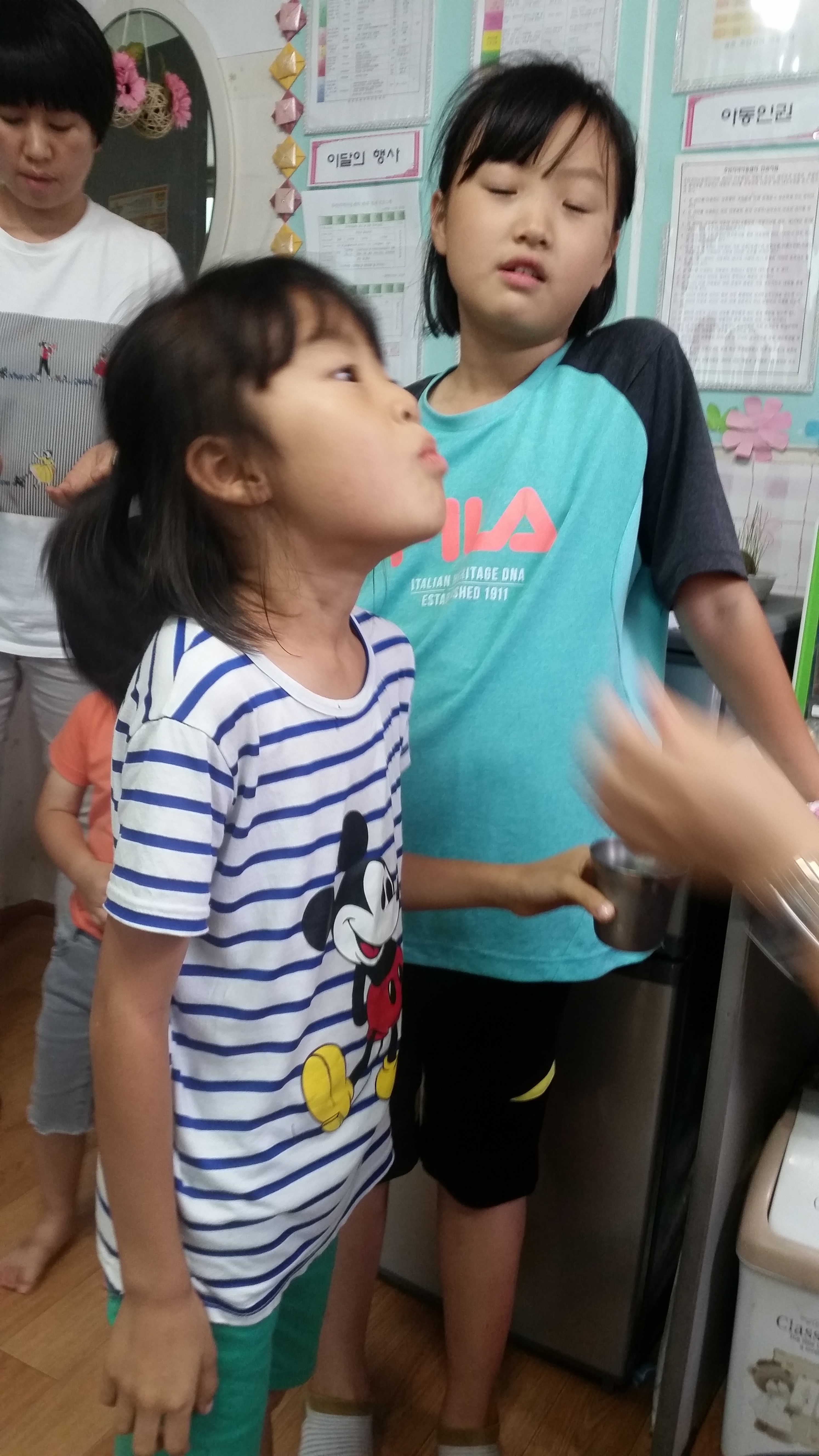 주안지역아동센터 아이들에게 화충약을 복용하도록 했습니다.