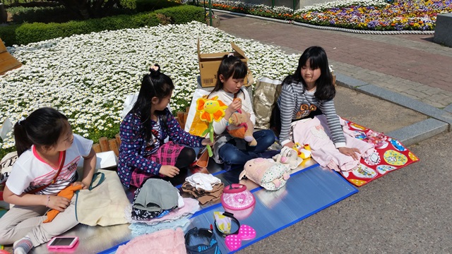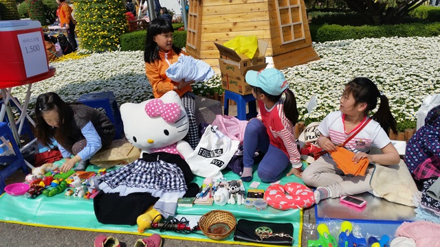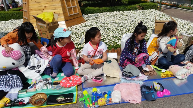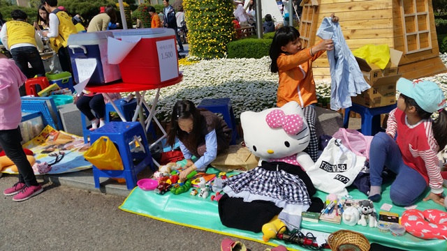 아이들의 미리 자기가 쓰지 않는 물건들을 다시 사용하도록 팔고 있다.