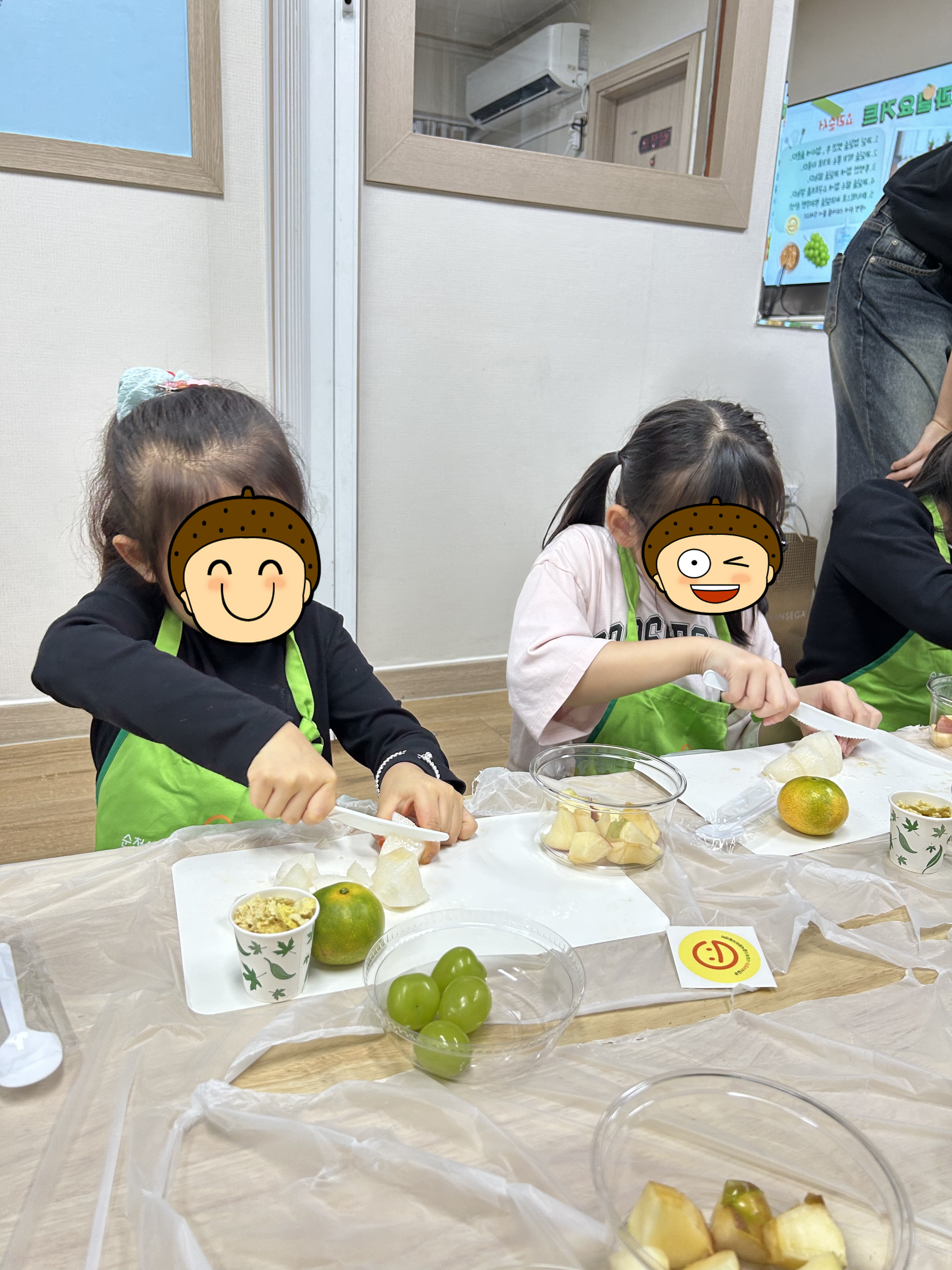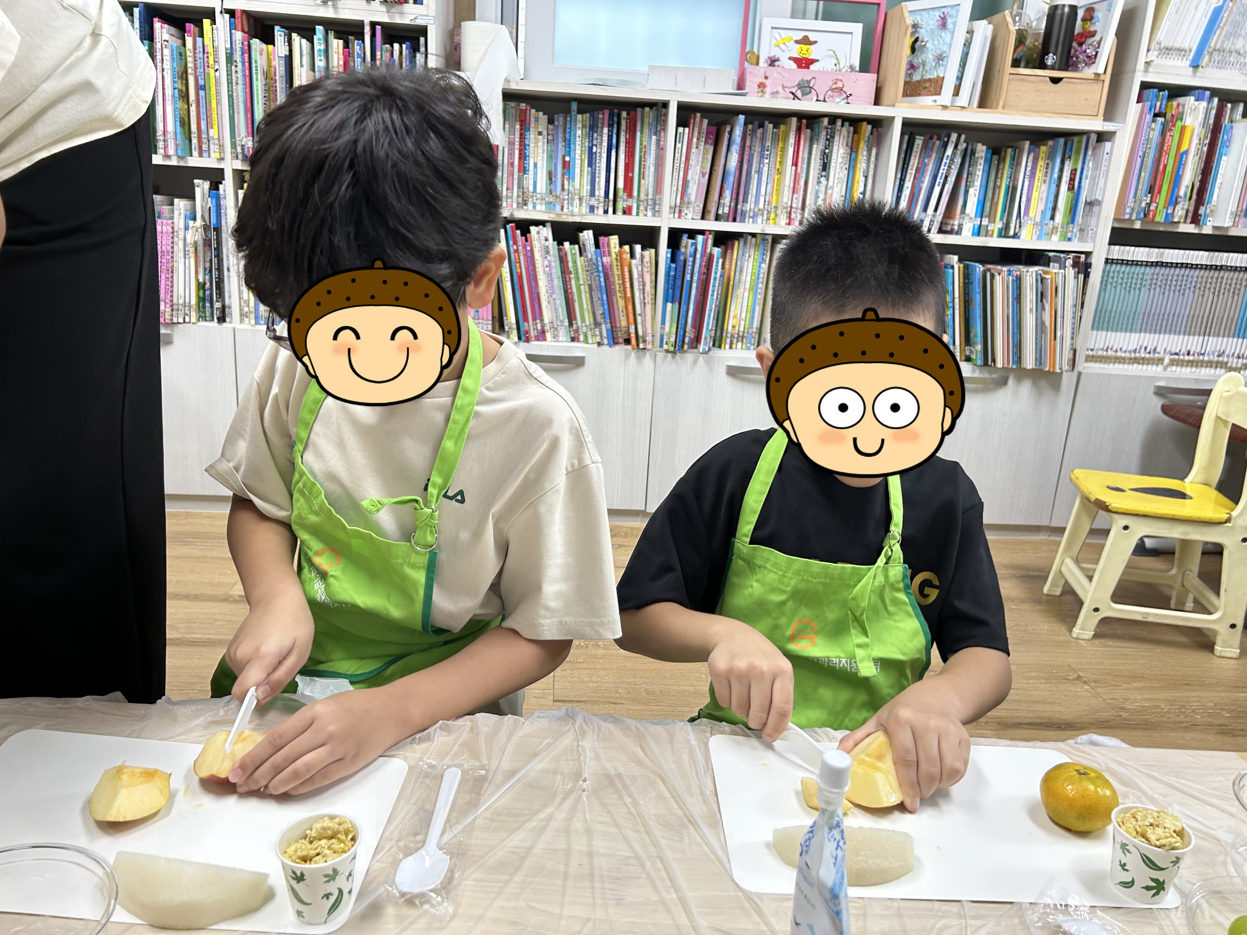 사과, 배, 귤, 포도, 요거트, 시리얼 등 우리 지역의 로컬푸드 식재료를 활용하여 열심히 자르고 담으며 맛과 건강까지 챙긴 과일 요거트를 완성했답니다.